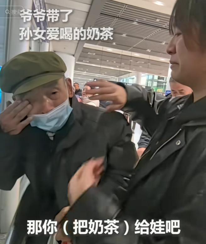 这谁能顶得住啊?陕西咸阳,一位88岁的老爷爷在机场接孙女,可孙女就站在他身边,他愣是没认出来。 孙女也是调皮,看着爷爷翘首以盼的样子,就想着逗逗爷爷。于是就用手轻轻的“捅了捅”爷爷的后背。爷爷转过头,眼神里带着点疑惑,转头看了看这个“陌生人”! 看到爷爷没有反应,孙女忍住笑问到:爷爷,你在看谁呢?爷爷特别认真的回答:你也来啦?在等盼盼(孙女)呢? 爷爷这话一出,孙女的眼泪就再也控制不住的流下来了!旁边同行的家人,这才忍不住提醒老人说:你看这谁啊? 这时,爷爷才回头仔细的看向了这个“陌生人”。开始还没认出来,可在家人的一再提醒下,爷爷的眼睛突然亮了,这才反应过来,这个“陌生人”就是他那个日日思念的宝贝孙女! 下一秒,爷孙二人没有过多的言语,只是紧紧的抱在了一起。二人拥抱流泪场面看到周围人都跟着抹了眼泪! 有网友说:爷爷还给带了奶茶,我看到这个真的哭死! 88岁的爷爷,自己走路可能都不是很稳当了,但即使这样,爷爷还是能记得给孙女带一杯“奶茶”。 其实,一杯奶茶不值什么钱,但这可能就是我们常说的亲情吧!可能现在的你,已经长大成人或者成家立业。但是在爱你的人的眼里,你永远都是那个需要被惦记、被呵护的“宝贝”!