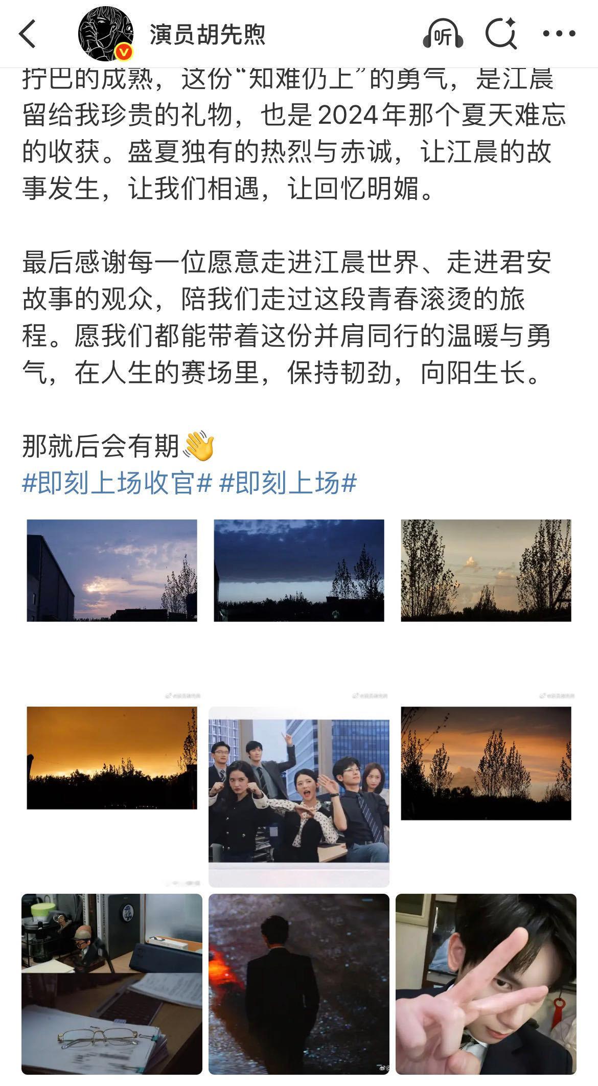 胡先煦即刻上场告别长文 时间过得太快了,在夏天开始的江晨的故事在冬日的初雪这天画上了句号🥹胡先煦你也很不舍吧,收官小作文从文案到配图完全是infp小蝴蝶满满的感性💧很开心能认识君安小分队,演员胡先煦就带着江晨的韧劲继续加油吧!我们下个角色见!