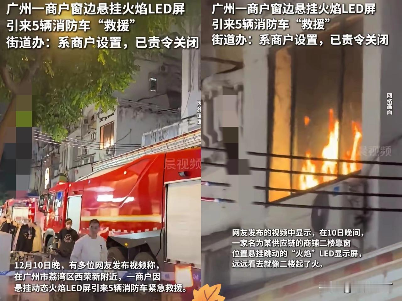 “这波操作纯属玩火!”广州一商家二楼的“熊熊大火”,直接惊动五辆消防车紧急驰援,结果竟是一块LED火焰屏惹的乌龙,网友怒喊必须严惩! 那逼真到以假乱真的火焰动画,配上一楼紧闭的大门,任谁路过都会心头一紧! 路人慌忙报警是出于对公共安全的责任心,消防员火速出动是职责所在,可这场闹剧,平白浪费了宝贵的应急救援资源! 创意营销的底线,从来都是不添乱、不扰民! 商家想靠吸睛设计引流没错,但打着创意的旗号制造恐慌,把公共安全当博取眼球的筹码,根本算不上高明的营销! 商家应该吸取教训,把创意和安全结合起来!