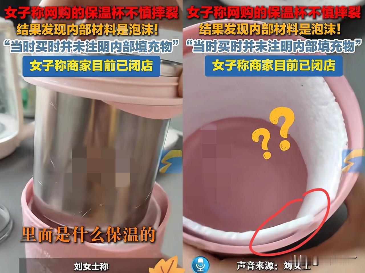 “太坑了!”近日,河南一女子购买了一个保温杯。不料,突然有一天不小心把保温杯掉在地上,这一摔不得了,竟意外扒出行业猫腻! 内胆和外壳之间根本没有真空层,全是廉价泡沫填充物! 花了钱买的保温杯,本指望能保几个小时温,结果摔一下彻底露馅! 这哪是什么保温杯,分明是糊弄人的“智商杯”! 更可怕的是,劣质保温杯不仅不保温,还可能暗藏爆炸风险,甚至用201非食品级不锈钢以次充好,长期用简直是给健康埋雷! 别被低价和花哨外观骗了,买保温杯一定要认准304或316食品级标识,装热水后摸杯身,发热的直接pass! 商家偷工减料赚黑心钱,坑的可是消费者的健康和权益! 大家对此有什么看法?