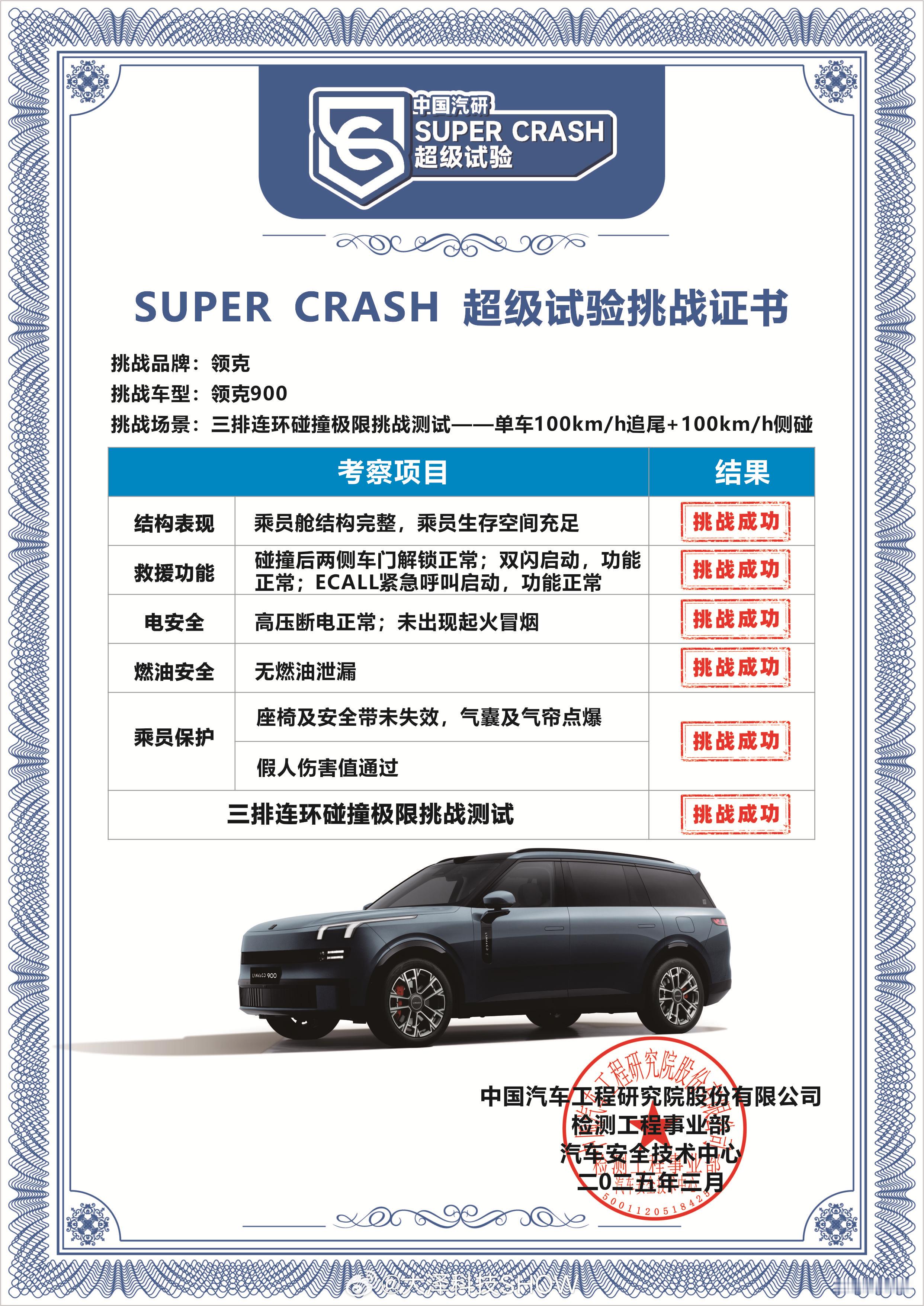 安全就是吉利 12月12日,领克900在吉利全球全域安全中心的直播里,用实打实验证了安全实力。先有央视见证的100km/h侧碰叠加尾碰超标成绩,这次又完成100km/h不等速车对车碰撞,每组数据都没玩虚的。作为SPA Evo架构打造的车型,它传承了沃尔沃SPA架构的安全基因,也难怪大家说领克是“安全世家”。车企把安全测试摆出来直播,不是噱头,而是让用户看到真实底气!一场被全球汽车圈围观的碰撞