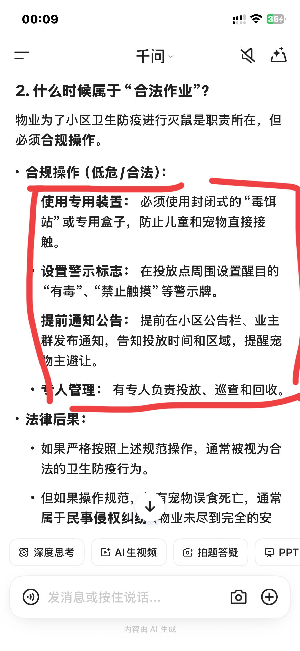 用耗子药毒死宠物狗为何会被判刑? 小区物业投放灭鼠药算不算投放投毒物品? 两拨人吵的不可开交的,截图是AI的回答,这两种行为,法律早就有明确规定了。 张大爷明显触犯了投放投毒物质罪,刑期可高达10年, 这次判了4年,已属于综合考虑的结果了! 那女的,我是没法共情,很多养狗人目无法纪, 给别人带了很大的困扰而不自知, 此案张大爷也是被逼的! 希望尽快修法, 类似香港那边的动保法,严格管理犬只, 防止虐待,防止伤人扰民! 避免此类事件再次发生! 宠物投毒案 毒狗入刑 宠物 投毒 养狗
