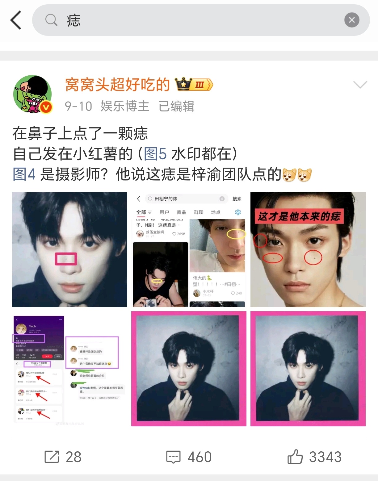 唯粉还没跳???田栩宁同款痣??这次不是9月那次扫描仪上的灰了吧? 如果是雪花,这位置真巧,有心了