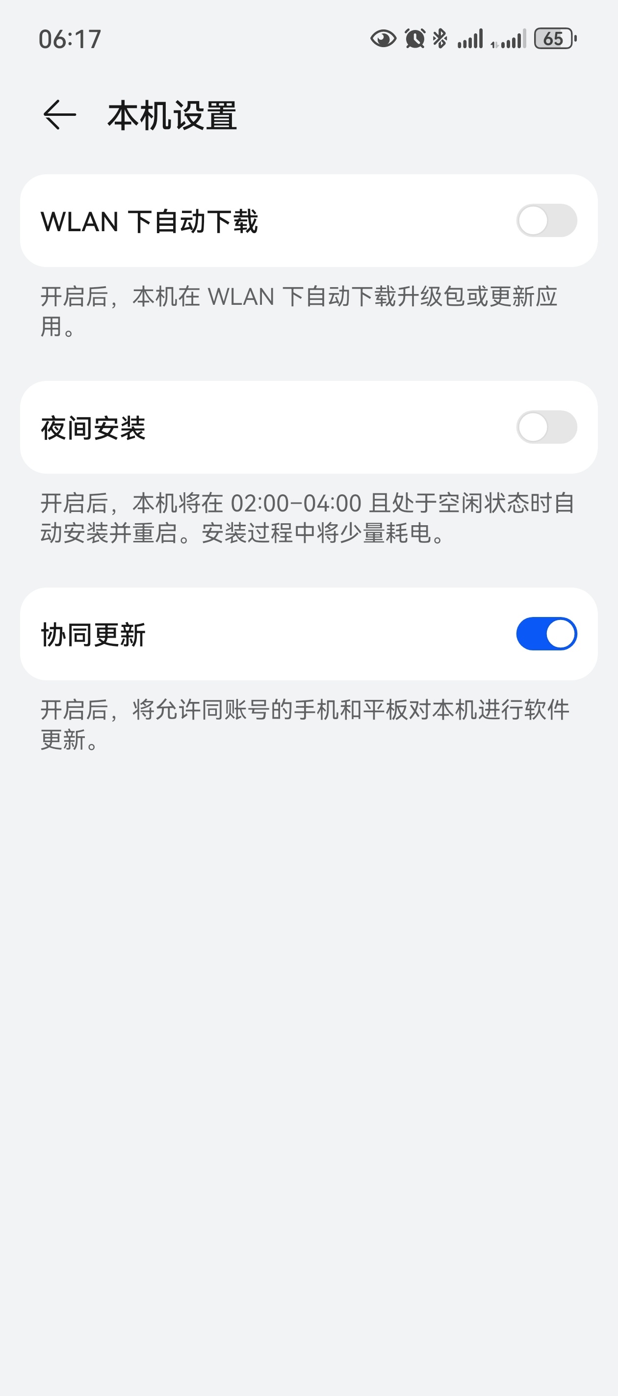 华为手机突然提醒升级系统,一看是“纯血版”的鸿蒙6.0,第一时间关闭“WLAN下自动下载”和“夜间安装”,真担心某一天突然升级了,鸿蒙6.0完全脱离安卓AOSP代码,手机里很多安卓应用装不了,能装的应用,功能上还被“阉割”了,听升级的朋友说,即便是“剪印”都只能用基础版功能。满谈手机再等段时间看吧,虽然“纯血版”鸿蒙会更流畅、更省电,据说跟苹果iOS一样丝滑,还是不要尝鲜了,或者买新机直接标配鸿蒙6.0系统。等过两年,考虑换新机且还选华为的话,再看吧,目前华为手机的品牌溢价太高,不如荣耀手机有性价比,而且很多功能都兼容、类似。