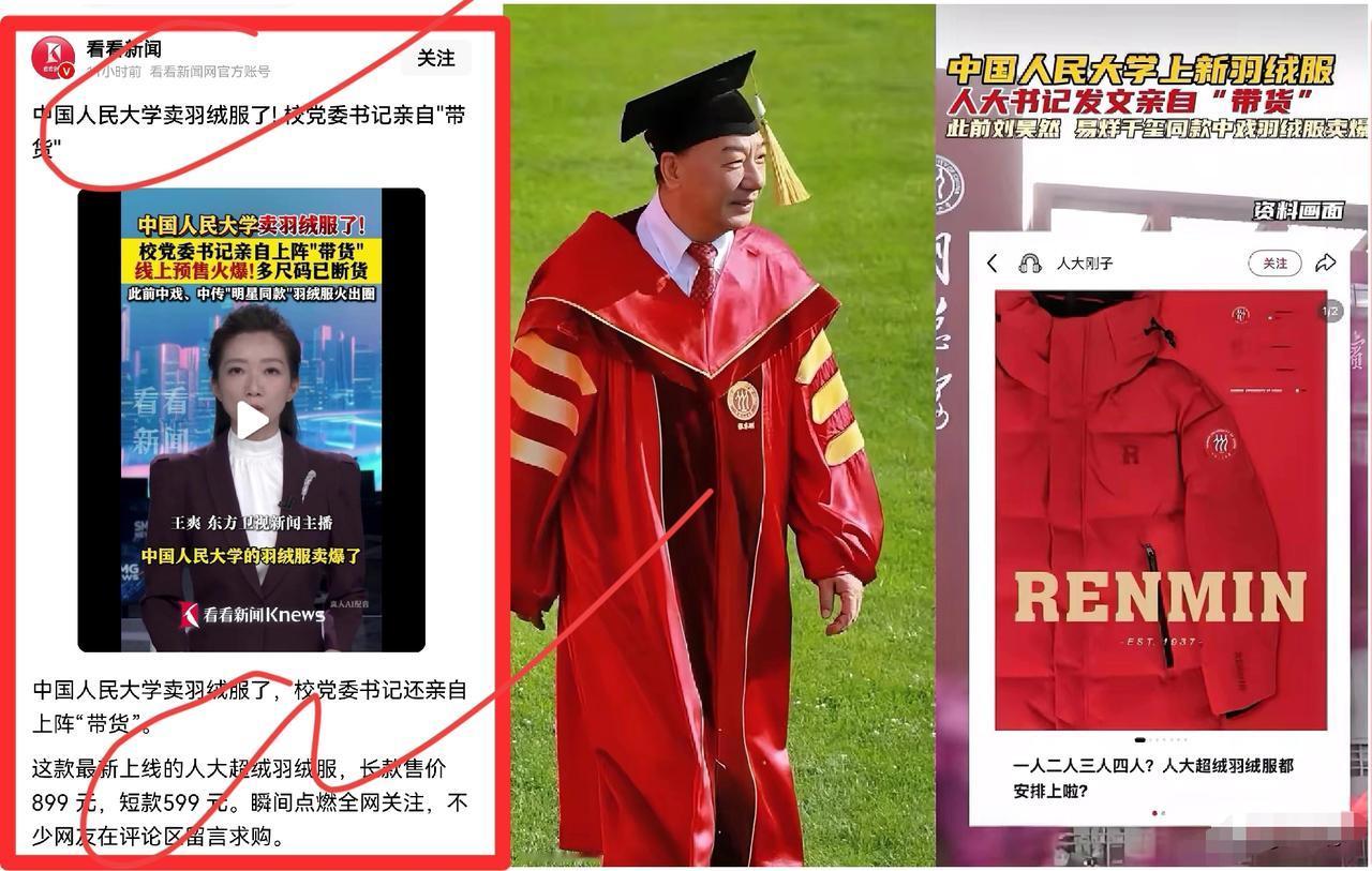 “人大刚子”上链接!48小时断货!这所大学用一件羽绒服,看透了这代年轻人 这两天,网上最火的带货主播,你可能想不到。 不是哪个顶流网红,而是中国人民大学的党委书记张东刚。他在社交平台上有个号,叫“人大刚子”。前几天,“刚子”随手发帖推荐了一款学校新出的“人大红”羽绒服,结果,炸了。 ———899元,人大红,书记亲自下场当“带货主播”。上线秒空,全网催货。但如果你只看到“高校文创火了”,那格局就小了。 这根本不是一场简单的带货。这是一场精心策划的“符号起义”。高校,正在用一件羽绒服,从商业巨头和流量明星手中,抢夺定义年轻人的权力。 过去,名校的符号是什么?是录取通知书,是学术论文,是高不可攀的象牙塔。它严肃、正确,但也遥远。 现在,一件羽绒服改写了这一切。 当人大党委书记张东刚以“人大刚子”的网名,在小红书像朋友一样发帖种草,高校的“人设”发生了核爆级反转。“权威”变身“网友”,这本身就是最顶级的传播事件。年轻人瞬间共鸣:原来母校也会“整活”,而且整得这么潮。 这波操作,精准踩中了Z世代的脉搏:我们厌倦了高高在上的说教,我们拥抱真实、有趣、能平等对话的“自己人”。高校放下身段的那一刻,反而赢得了最高的品牌溢价——情感认同。 为什么必须是羽绒服,而不是钢笔或笔记本? 因为羽绒服是冬季的“刚性展示品”。它占据视觉C位,覆盖时间长,社交属性拉满。穿上“人大红”,你就不再是一个模糊的个体。你是一个移动的、温暖的、有圈层归属的“文化符号”。 在陌生人社会,这件衣服成了高效的“社交筛子”。校友相见,相视一笑,无需多言,认同感瞬间达成。它甚至成了“智性恋”的时尚外显:我穿的不仅是暖和,更是智商和品味的双重认证。 其他高校早已参战:中传的“传媒蓝”被明星带火,武大的黑色款因雷军秒光。这不再是单品竞争,而是一个全新的 “赛博校服”宇宙 正在崛起。学生们用真金白银投票,选出自己愿意穿在身上的身份标签。 在奢侈品用LOGO筑起壁垒,快时尚用潮流制造焦虑的今天,高校羽绒服提供了一种 “反叛式消费” 选择。 年轻人用行动宣告:我不需要靠外国大牌的商标来证明自己。我的学校、我的学识、我所属的文化共同体,就是我最高级的“奢侈品”。 899元买到的,是远超物理保暖的“情绪价值”:是母校自豪感,是圈层归属感,是知识带来尊严的直观体验。这本质上,是一代人对自身文化价值的确认和消费。他们不是在买一件衣服,而是在为自己的“信仰”和“来历”投票。 这场胜利绝非偶然。它标志着中国顶尖高校的IP运营,已从二维的平面纪念品,跃升到三维的“人格化-场景化-生态化” 立体作战。 ①人格化前台:“人大刚子”这样的亲民IP,是流量的引爆点。 ②场景化产品:羽绒服切入日常高频场景,让文化符号“活”在生活里。 ③生态化延伸:从个人款到“家庭套餐”,文化认同实现了代际传递和家庭渗透。 这是一套组合拳。产品是载体,情感是内核,人格化沟通是桥梁。它精准地满足了当代人渴望连接、寻求意义、标榜身份的核心需求。 所以,别再问羽绒服为什么爆了。 你应该看到,一所大学,如何用一件衣服,完成了一次现象级的文化叙事。它象征着一种新文化权力的诞生:来自学术、知识和共同体的魅力,正在挑战商业和流量构建的旧秩序。 这团“人大红”火焰,烧出的是一条新路。它告诉所有品牌:最高级的营销,是构建一种让人自豪的身份认同;最长久的潮流,是植根于深厚文化的情感连接。 当年轻人纷纷穿上“母校战袍”,他们穿起的,是一整个文化共同体面对世界的自信与从容。这场静悄悄的“符号战争”,赢家早已注定。