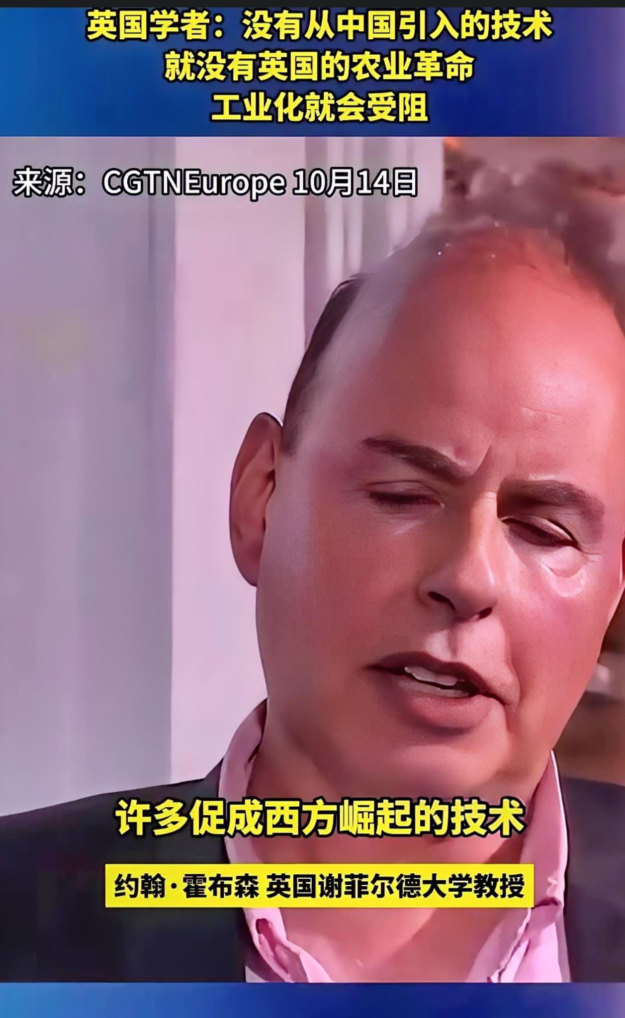 终于有西方的学者勇敢说真话了。英国谢菲尔德大学教授约翰·霍布森在电视节目中说:“没有从中国引进的技术,就没有英国的农业革命,工业化就会受阻,西方人拿来了却说是西方人发明的。”他还特意列举了出了两个例子,旋转绕线机和移动犁就是从中国引进后再改进的。 旋转绕线机,这东西对纺织业太重要了。它的根在中国。历史学者发现,为了处理丝绸,中国人在公元前好几世纪就搞出了类似纺轮的东西。这比欧洲早太多了。丝绸技术是中国独有的,这些省力的机器想法就是从这儿开始的。 再看移动犁。中国的犁很先进,有弯曲的金属犁壁,能深耕碎土。欧洲的老式犁又笨又重。后来,中国的犁技术传到了欧洲。英国人詹姆斯·斯莫尔在18世纪搞出了“罗瑟勒姆犁”,成了他们农业革命的核心。可教科书只提斯莫尔,不提中国犁。 除了机器,很多农业思想也来自中国。比如轮作休耕,中国古书《齐民要术》里早就写得明明白白。欧洲后来用的轮作制,原理是相通的。 为什么承认这些这么难?因为很多西方历史书,写的是“西方中心论”。它们要把西方崛起说成是自己天生优秀。承认借鉴了东方,这个故事就不“纯粹”了。 这影响很深。像活字印刷,中国发明早了好几百年,但很多西方人只认古腾堡。好像什么重要东西,都必须是西方原创的。 霍布森教授写了本书,叫《西方文明的东方起源》。书里讲,从公元500年到1800年,欧洲一直在吸收东方的养分。欧洲的崛起不是奇迹,是站在了像中国这样古老文明的肩膀上。 今天,全球紧密相连。记住技术全球流动的历史,对我们尤其重要。它能打破偏见。它让我们明白,创新往往是在交流中爆发的,不是一个人、一个地方闭门造车的结果。 各位读者你们怎么看?欢迎在评论区讨论。