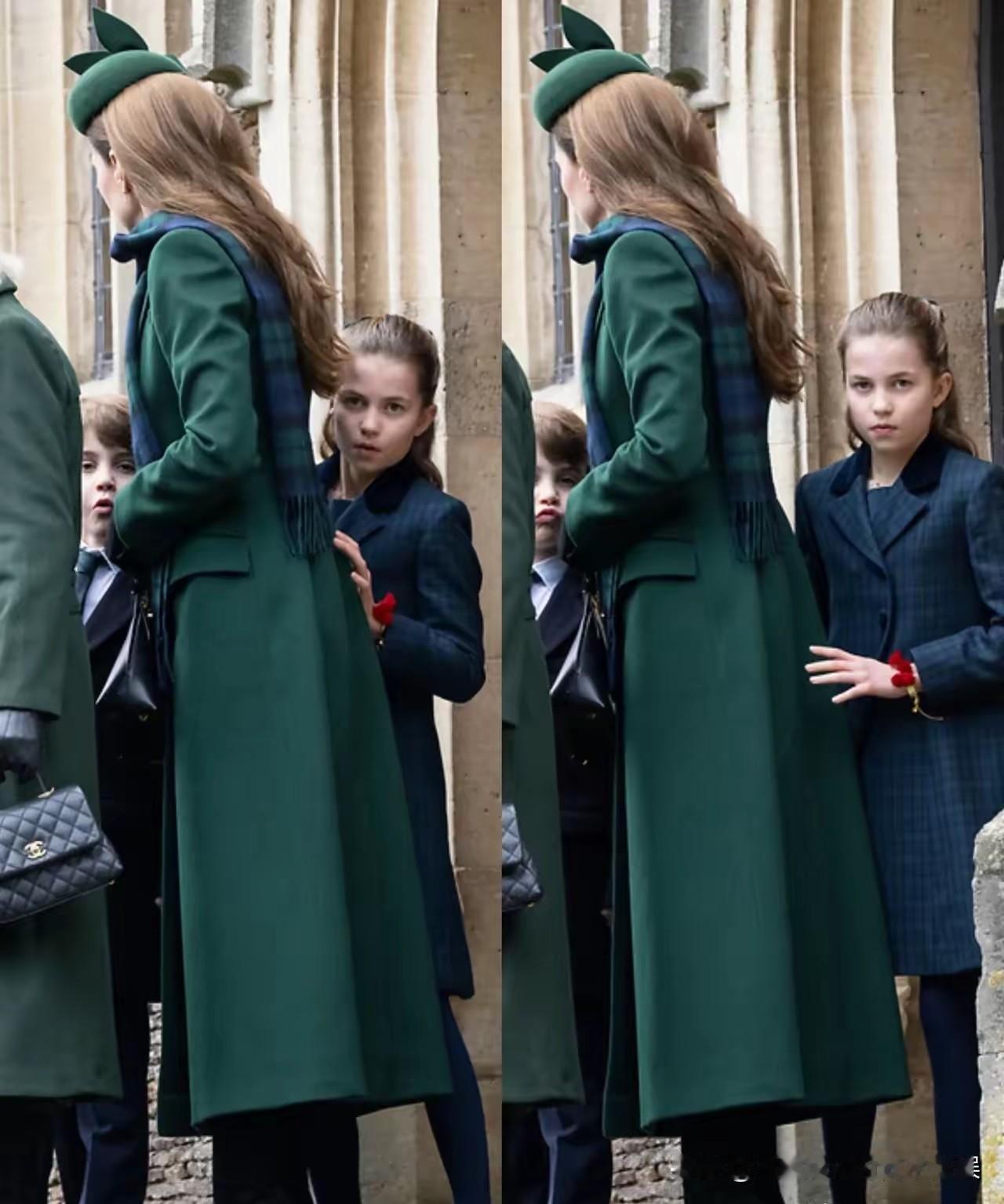 圣诞节又要来啦!凯特王妃和夏洛特公主、路易小王子的这张照片拍的太有意思了! 回顾去年威廉王储和凯特王妃带着威尔士三宝一起和王室大家庭一起参加圣诞教堂礼拜活动时,画面真是美好温馨。 尤其是这张最新捕捉到的一张照片,第一次看到,更是相当有趣。 凯特王妃站在婆婆卡米拉王后身后,婆媳俩和他人热聊打招呼,威尔士三宝耐心的等待妈妈。 夏洛特公主在妈妈身后,穿着和凯特王妃同色的大衣裙,甜美可人,探头望着镜头的样子,公主范儿十足。 鬼马小王子路易太可爱了,在妈妈凯特王妃和奶奶卡米拉王后中间探头探脑,还不时嘟嘴卖萌,小模样太可爱了!
