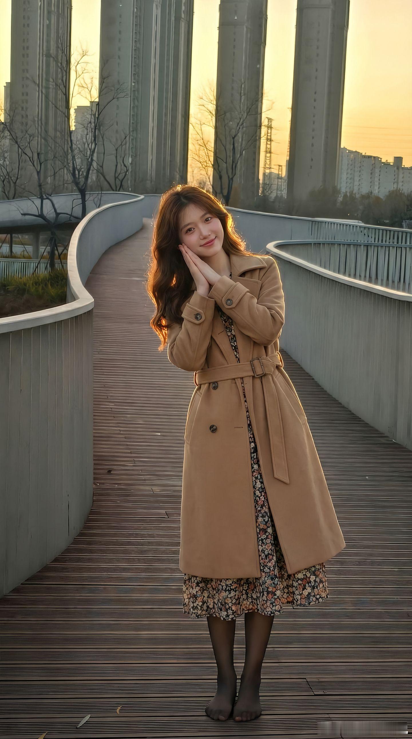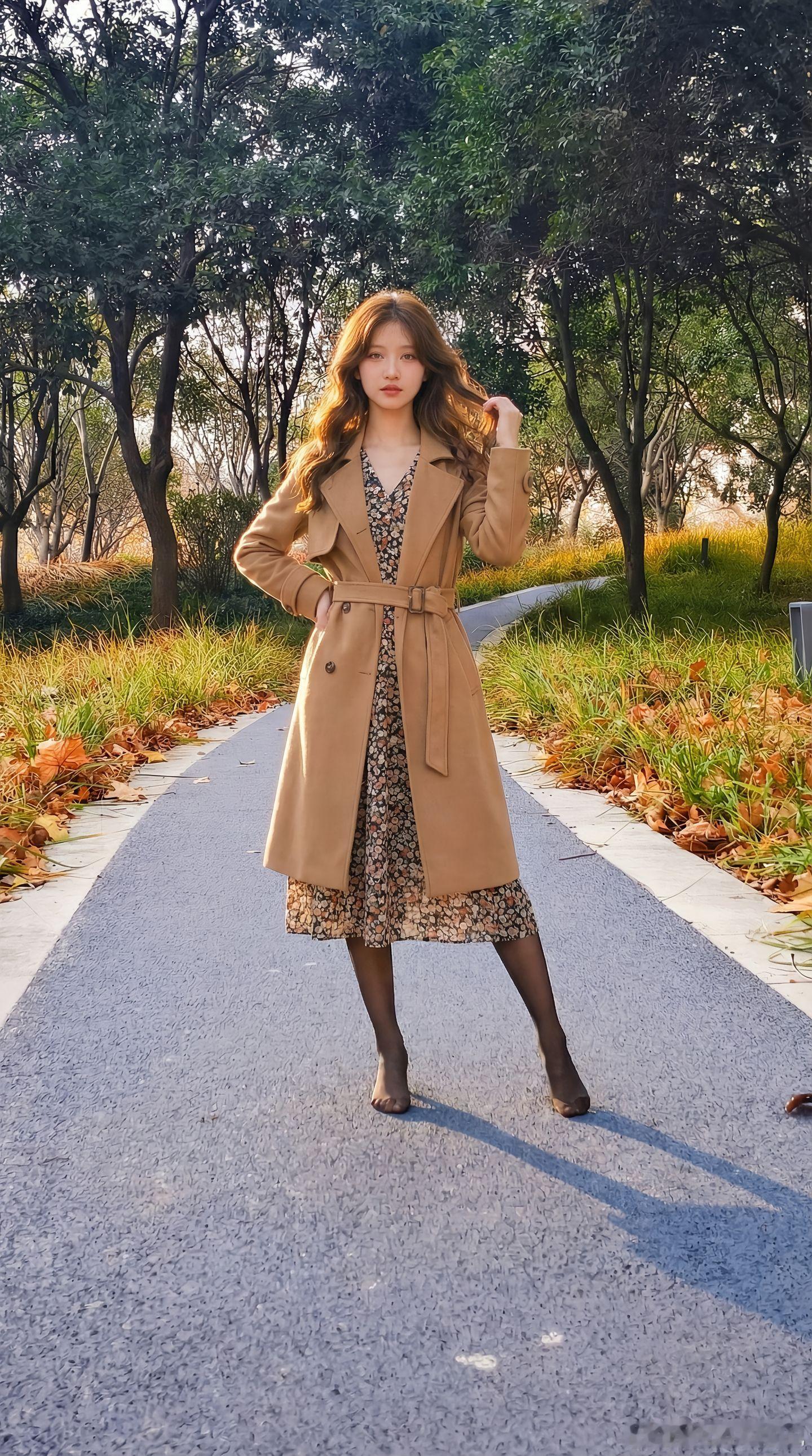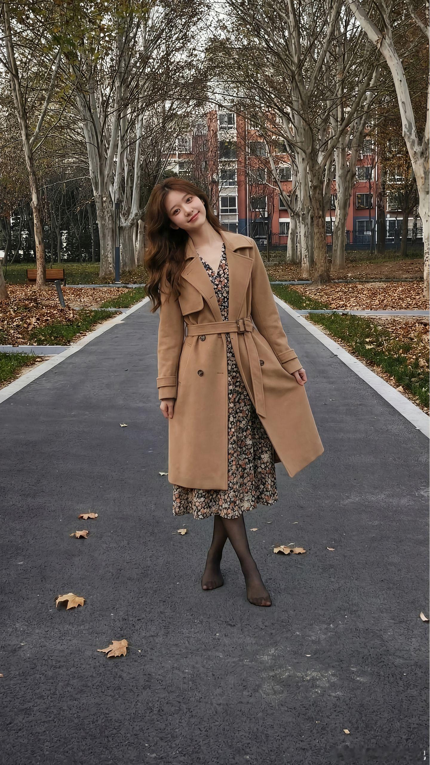 今天穿什么 棕色大衣,碎花连身裙,黑丝,出门回头率拉满美女绘梦长廊