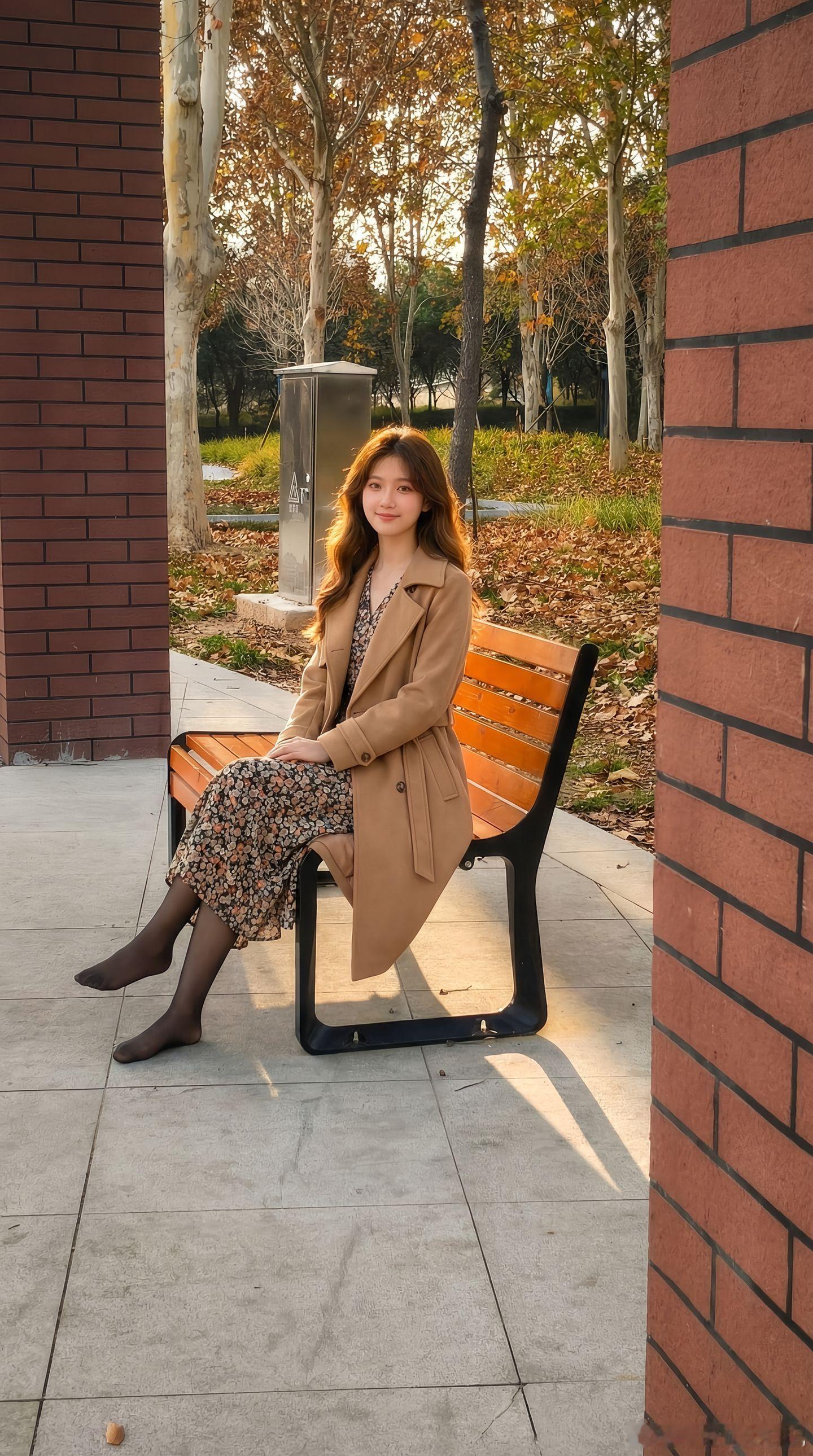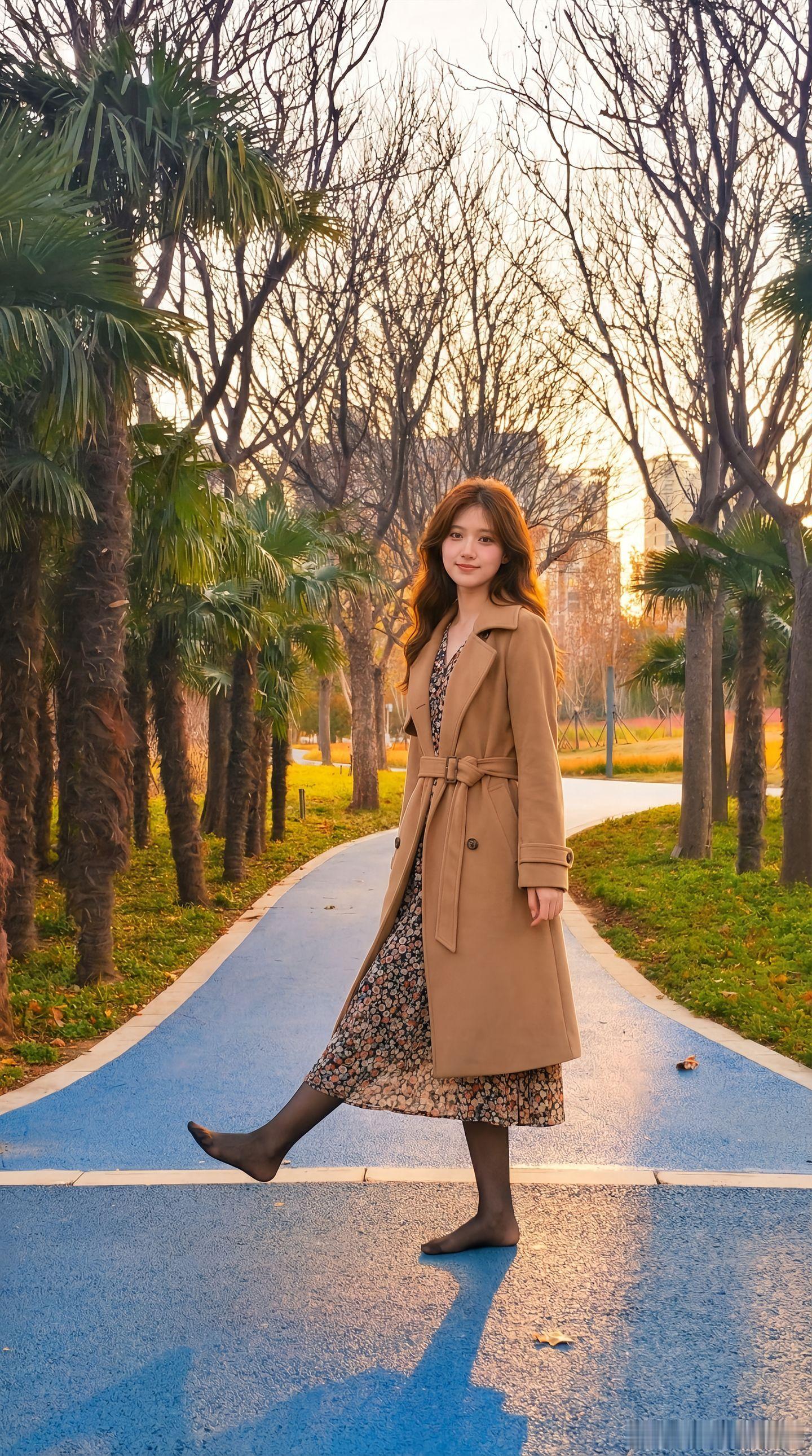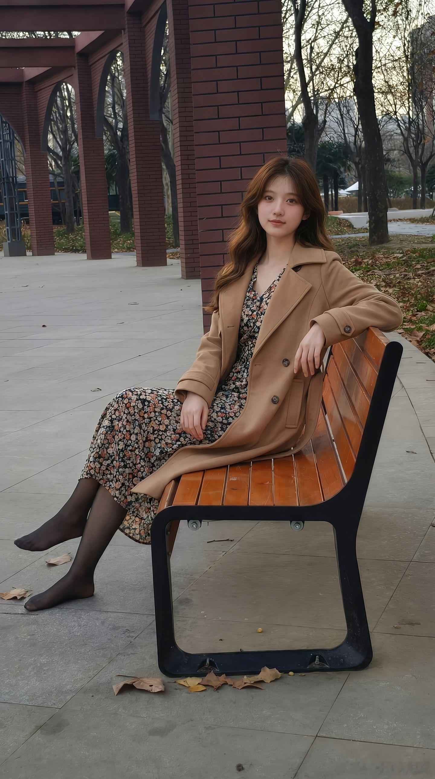 今天穿什么 棕色大衣,碎花连身裙,黑丝,出门回头率拉满美女绘梦长廊
