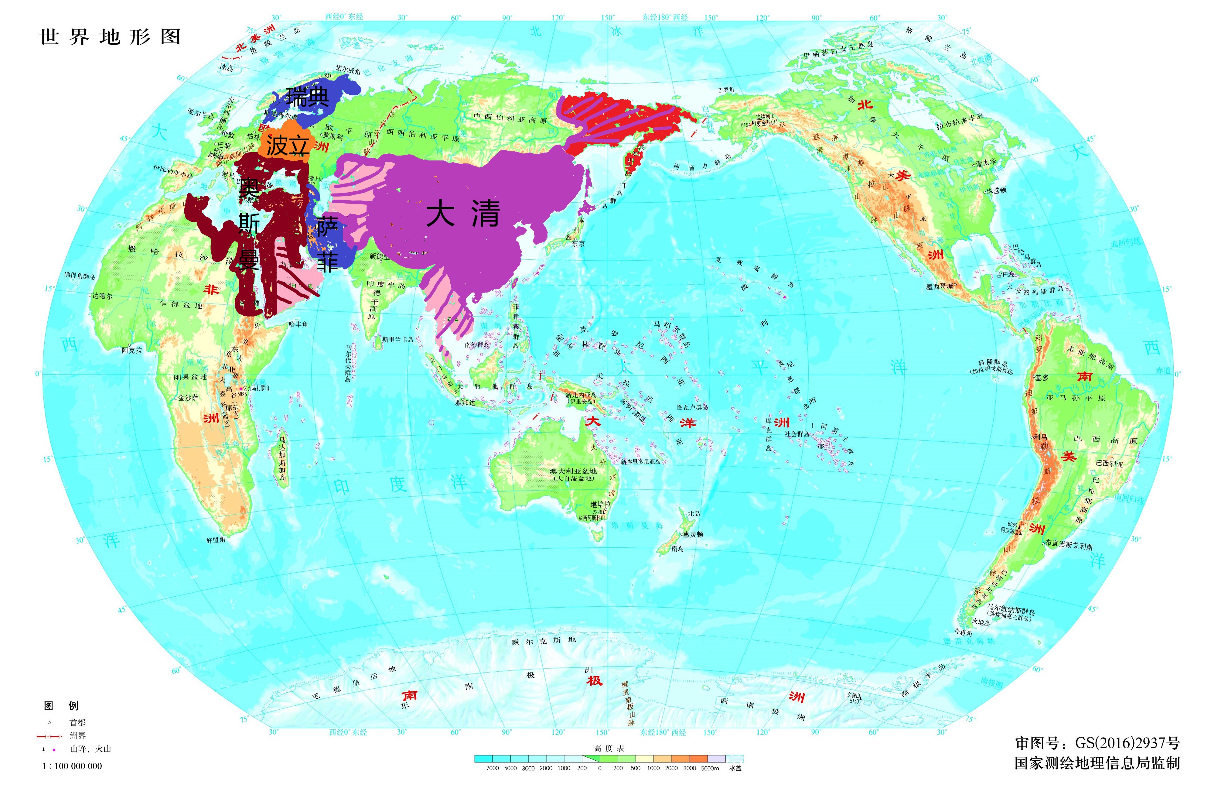 17-18世纪的亚欧形势,清朝,奥斯曼,波斯,波立,瑞典五大强权,牢牢屹立于世界岛。