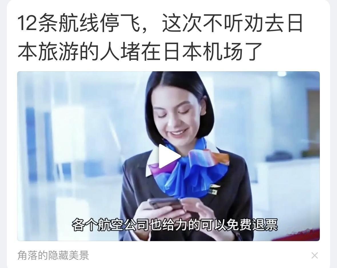 低级红高级黑的帖子,国家怎么可能把同胞仍在敌国不管?事实上,也没有人因为12条航线停飞回不来,国家发出警告以后,确实赴日旅游人数大幅度下降。机场人多,飞机也多,到机场的人都有票,没有票的人也不往飞机场赶,你以为这是等公交车呢?