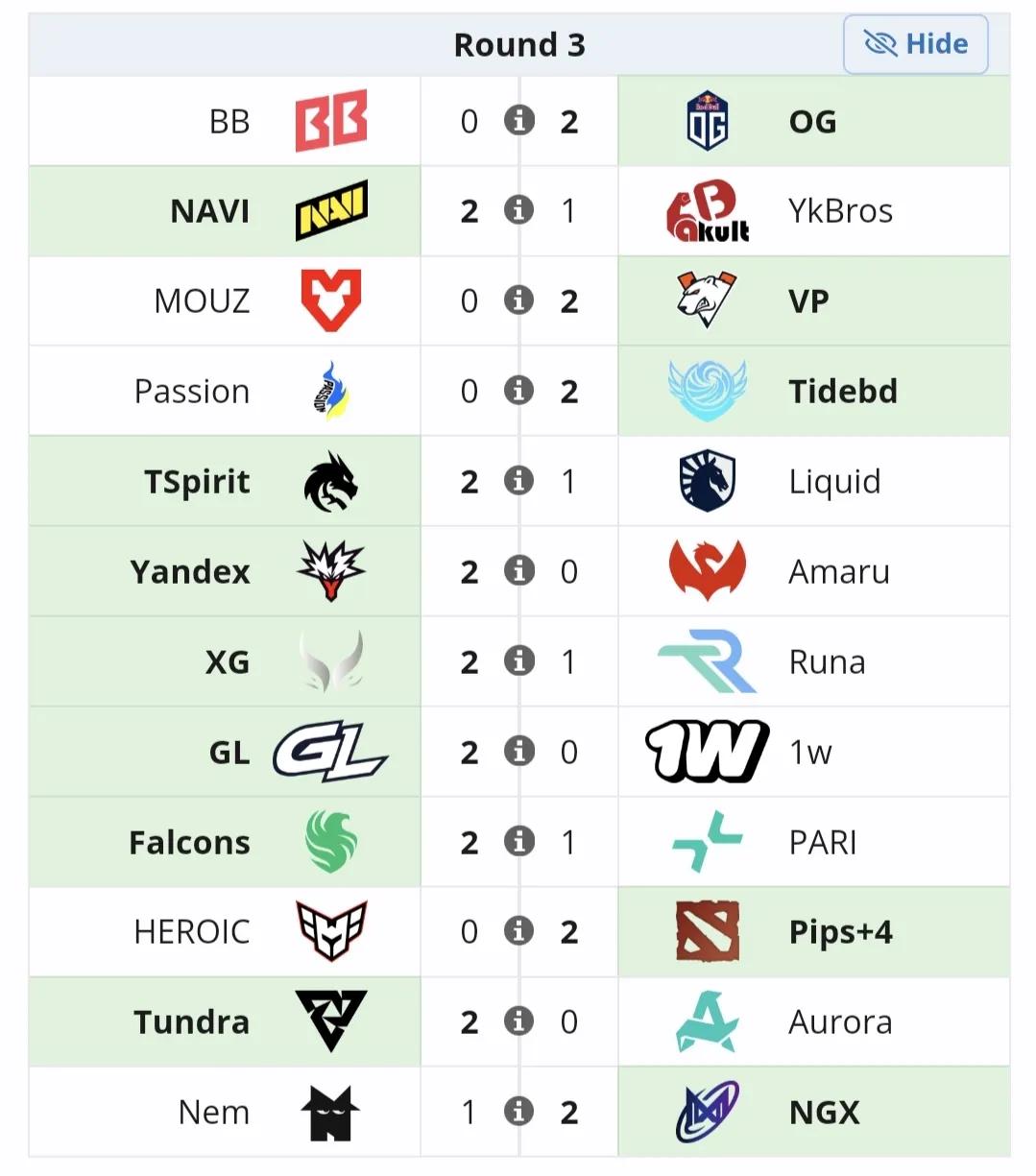 梦幻联赛S27瑞士轮第三天赛果,两胜一负 YB 1:2 NV,辣眼睛的比赛,三局都是优势,第一局差点被翻盘,第二局被翻盘,第三局也是优势被翻。 TBD 2:0 PA,软柿子轻松拿下。 XG 2:1 RUNA,也是变态,三局劣,靠哥哥大后期1v5拿下,哥哥采访说自己生病了,并且对内沟通存在问题,知道问题为啥不改了,咋回事。