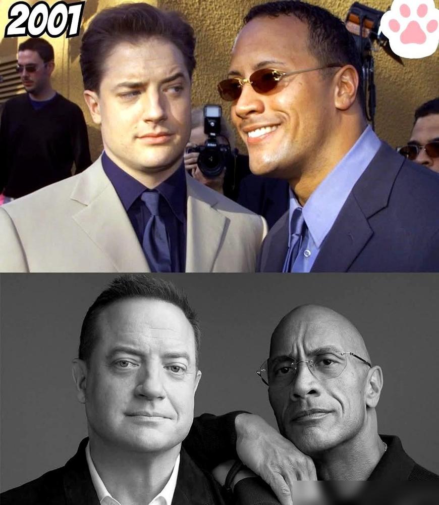 好莱坞最不缺什么? 踩高捧低。 事情其实很简单:两个演员,24年里在不同低谷和高峰互相递了一把手。一个是《木乃伊》时期的布兰登·弗雷泽,一个是当年还没出圈、只在续集里露了几秒的摔角手强森。 先往回倒。1999年《木乃伊》爆了,续集里弗雷泽把强森带进剧组,戏不多、台词更少,但那是强森第一次站在电影镜头前。后来他顺着这次亮相,接到了《蝎子王》,路一下子被打开。 很多人容易忽略的是,那时候的“提携”并不热闹,也不体面。一个是当红男主,一个还是新人,帮不帮,完全看人。 时间跳到2018年,位置对调。强森成了票房保证,弗雷泽却跌到谷底。强森把他叫进《狂暴巨兽》的片场,戏份有限,但这是一次“你还在”的确认。 我更在意的是后面那次。弗雷泽拿到《鲸》,心里打鼓,强森当面跟他说那句“你得演”。这不是客套,更像老朋友在关键节点替你拍板。 再后来,奥斯卡那晚,强森没去红毯,坐在放映厅里鼓掌,看着弗雷泽拿奖。发的那张对比照,也没多说什么,但意思很清楚:这条路,他们彼此都没缺席。 说个现实点的对比吧。这个圈子里,红的时候大家都认识你,凉的时候电话都打不通。真正稀缺的不是资源,是在你不值钱的时候还愿意站你身边的人。 所以这故事戳人的地方,不只是成功逆袭,而是他们在对方高峰时不蹭、低谷时不躲。能把这种分寸守二十多年,比任何奖杯都难。 你身边,有没有那种走了十年以上、关键时刻还肯拉你一把的人?如果有,真的要珍惜。