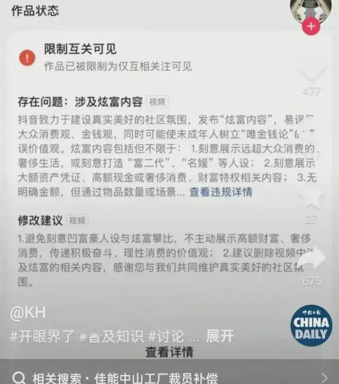 干了20年,拿到63万离职补偿,本想发个抖音记录一下,结果平台以“炫富”为由直接下架! 老员工懵了!这钱是每天流水线上熬出来的,不是偷不是抢,怎么晒一下就违规? 可另一边,网红直播500天花200万只是利息,晒黑卡名包,反而流量冲天。平台反炫富,难道只反普通人辛苦钱,不反虚浮的流量戏法? 更荒诞的是,佳能这波补偿(约2.3N-2.5N+1)还被扣上恶意补偿帽子,有人说这是外资糖衣炮弹,故意拉高行业标准。可法律只规定底线,人家自愿多给,咋就成恶意的了? 外企底线是劳动法,国内一些企业的上限却是劳动法。大家羡慕的不是63万数字,而是企业把员工当人看的尊重。 该讨论的早不是钱多钱少,而是该鼓励什么样的价值认同。平台若真反炫富,该砍的是鼓吹不劳而获的虚浮内容,而不是普通人用青春换来的体面告别。 毕竟,打工二十年,晒的不是钱,是一句公司没寒我的心。