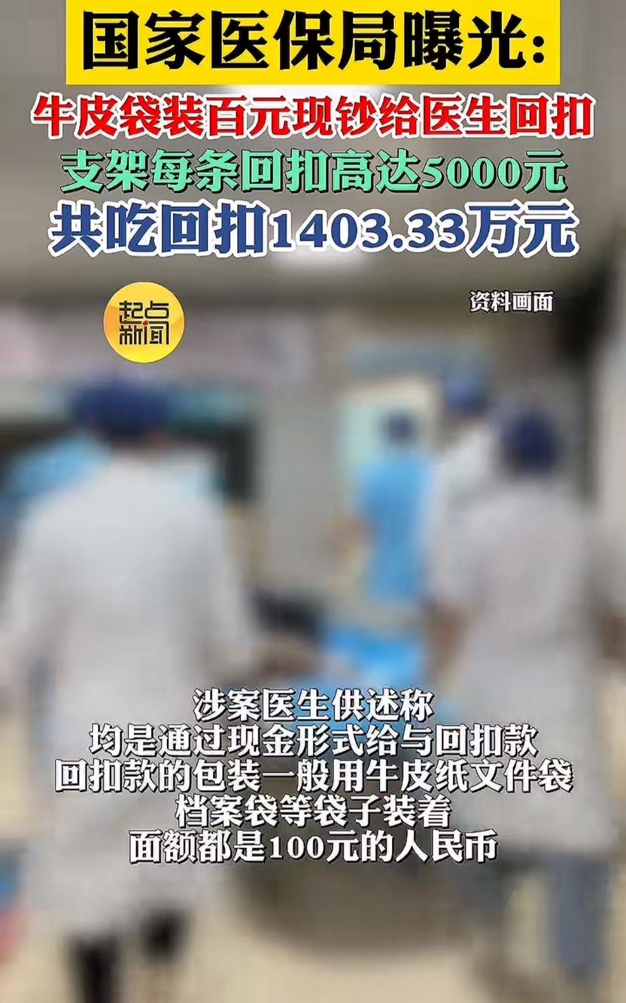 令人瞠目结舌!医保局曝光,上海某医疗器材商,为了让医生在手术时多往患者身体里放他们的心脏支架,用牛皮纸袋装着现金,在七年时间给河北一家医院的多名医生送了1400多万,单条支架回扣能5000元,球囊每条1000元左右!网友:这哪有一点医者仁心,这眼里全是生意和利益……