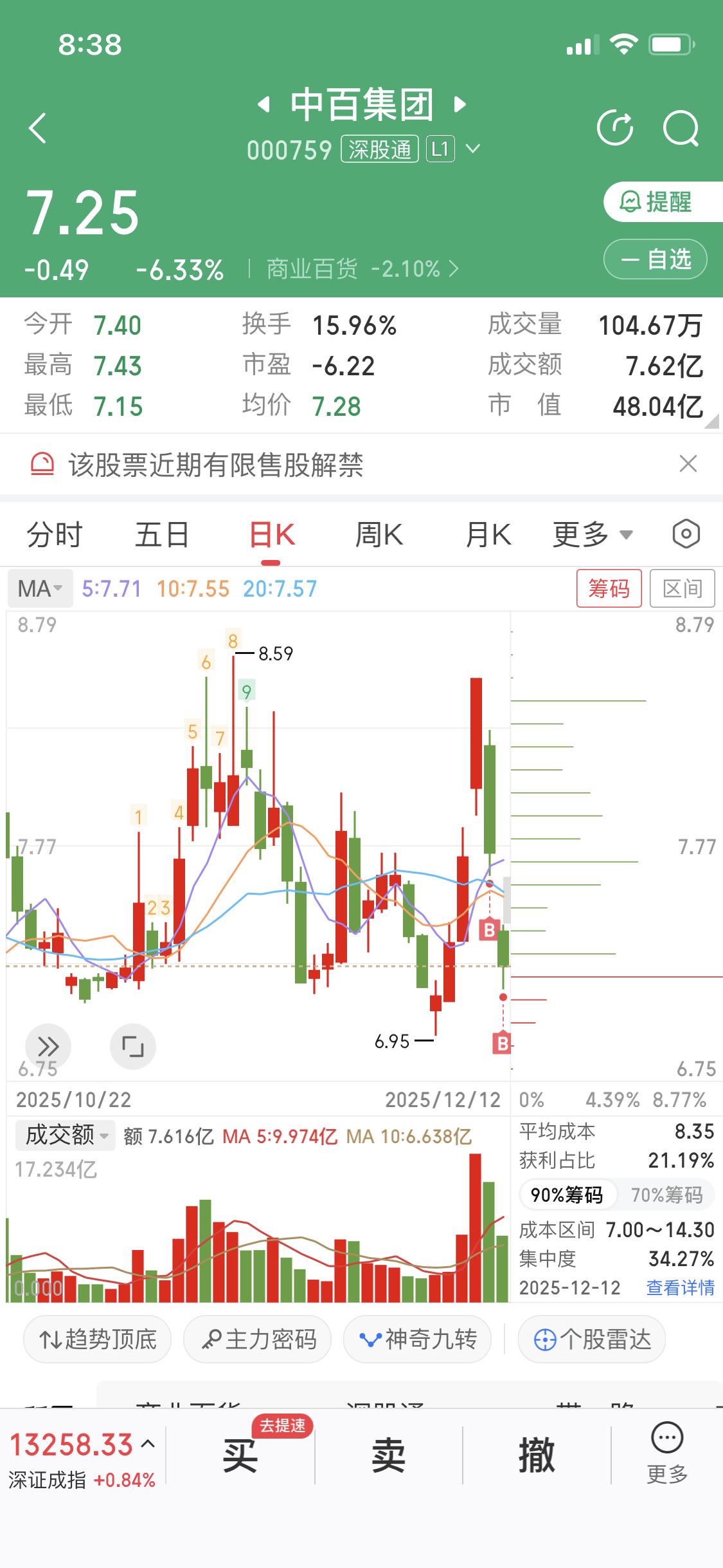 12月13日,消费板块值得重点关注,我重仓了中百集团。当天A股“首发经济”概念走强,中百集团涨停,而且它已经10天7板了。 “首发经济”是顺应消费升级和高质量发展的经济形态,中央和地方都很重视。中央经济工作会议明确明年要大力提振消费,实施提振消费专项行动。各地也出台政策鼓励“首发经济”发展,它成了促进消费增长的重要引擎。随着政策推动,消费市场有望进一步活跃,中百集团作为零售企业,或许会迎来更多机会,我很期待后续表现。