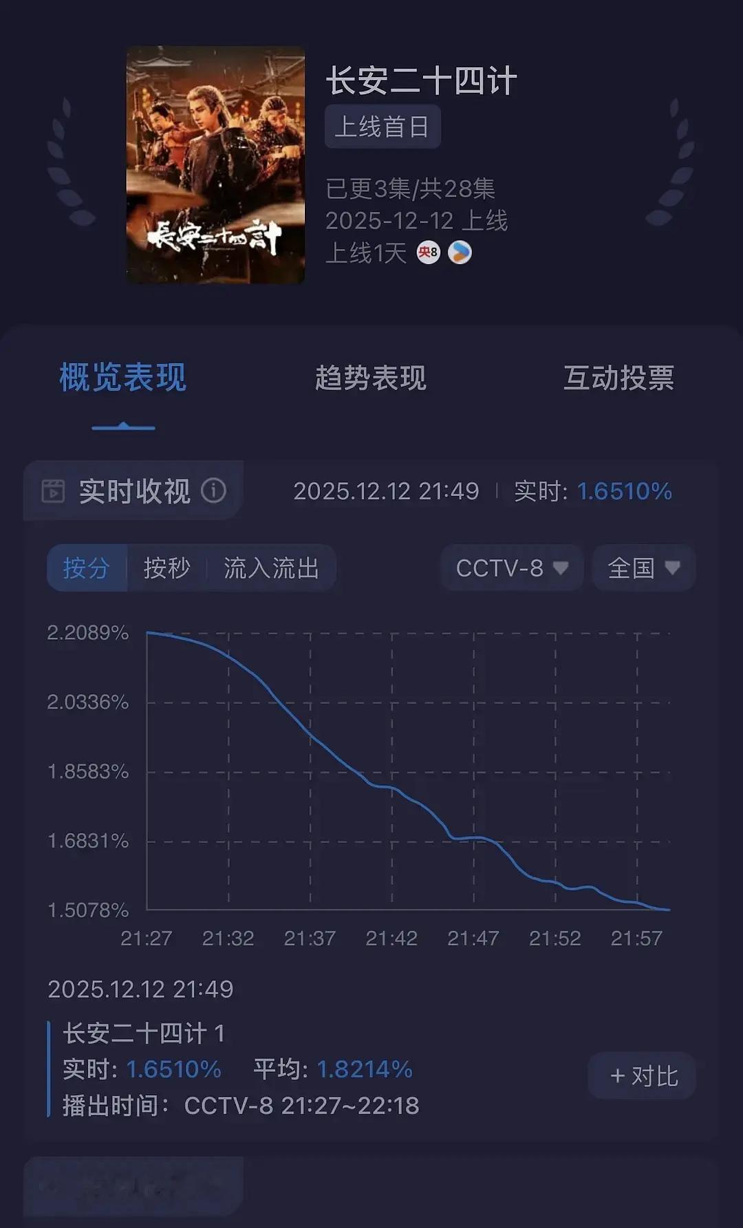 风与潮开播10分钟,酷云收视破2!上部剧大结局酷云峰值1.4!接的倒一底盘,风与