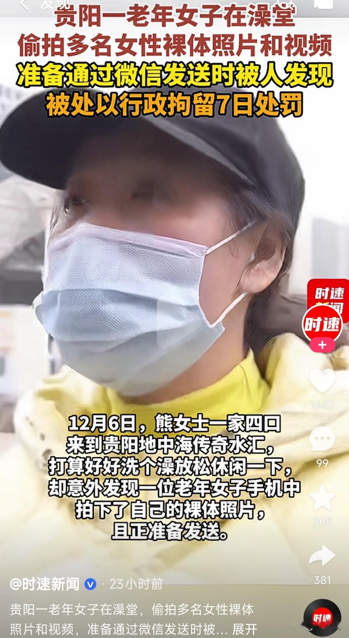 贵阳一老年女子在澡堂偷拍多名女性裸体照片和视频,准备通过微信发送时被人发现,这老