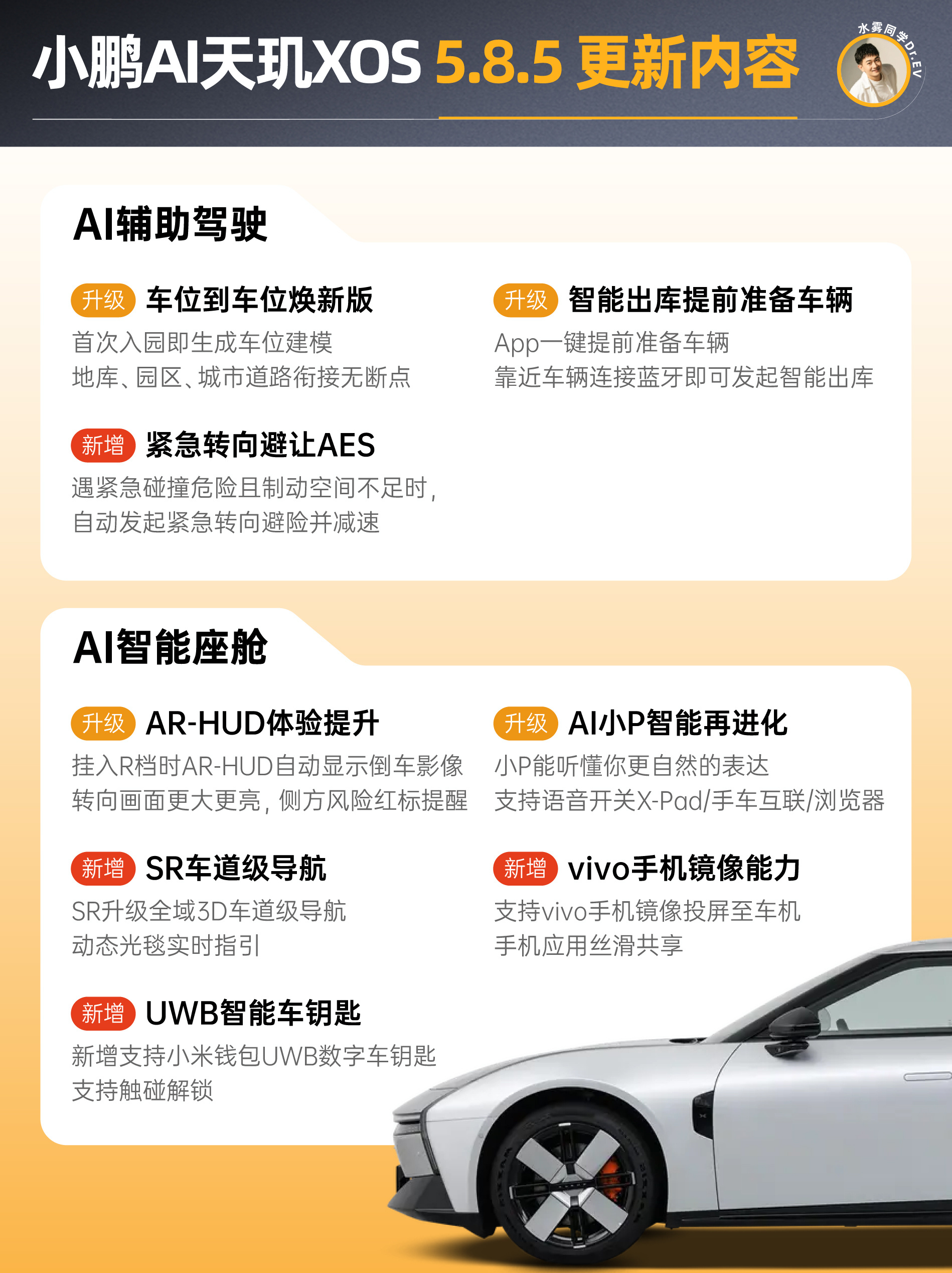 记得2020年第一次接触新能源,小鹏P7,我哥说这车有模拟声浪,还有自动泊车。给我儿子演示手机操控车辆向前移动,当时没觉得有啥大不了的。但这些功能某些厂家5年了才跟进,真有一种初始不知曲中意,再听已是曲中的意境。为什么喜欢小鹏,因为在科技方面从不会让人失望。小鹏这次OTA情绪价值相当足,我整理一下,仅供参考。小鹏G7大v聊车