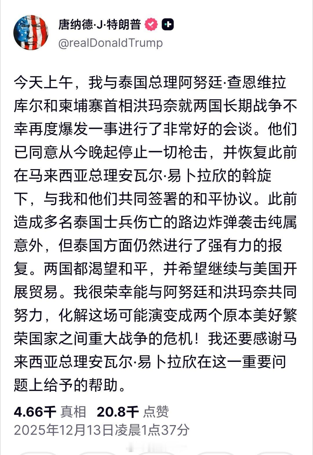 特朗普称泰柬领导人同意停火特朗普称,泰国和柬埔寨领导人同意停火