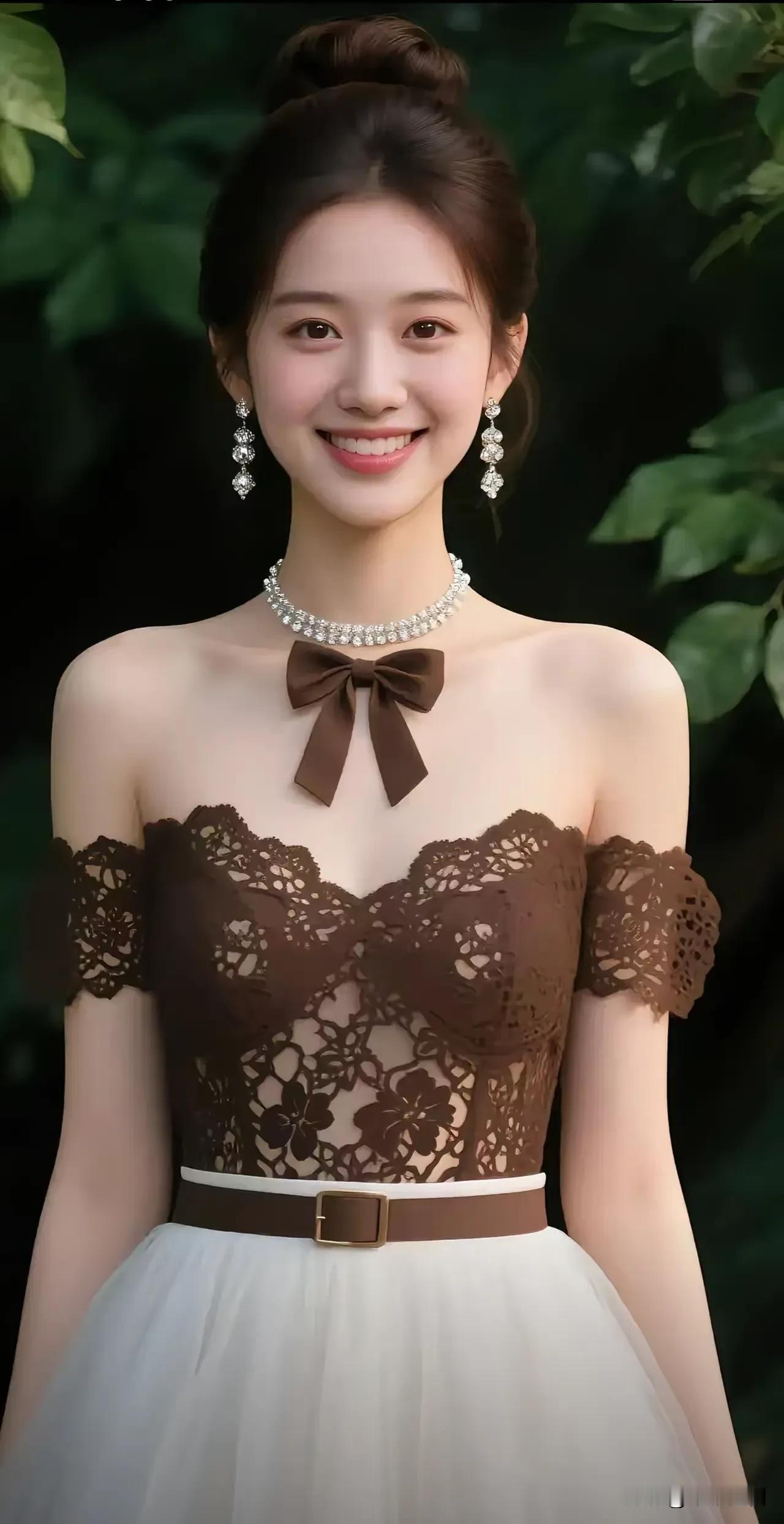 棕蕾丝缠着柔纱裙摆,颈间蝴蝶结牵起碎钻的光。笑意落进眼底时,连身后的绿意都浸了层甜,像把焦糖味的温柔揉进了风里。 温柔风蕾丝长裙 温柔蕾丝风 高级感蕾丝裙子