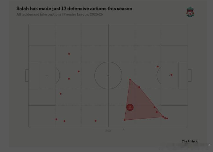 竞技报:萨拉赫不防守有错吗?萨拉赫的要求,新任主教练斯洛特减少了这位埃及前锋的防守职责,这确保他有足够的体力在攻防转换中进行强力冲刺。然而,给予萨拉赫这种自由现在却成了一个问题,而不仅仅是一个战术特点。就防守行动而言,他现在与皇家马德里的姆巴佩处于同一防守水平——在超过1100分钟的联赛时间里,仅做出两次铲断和两次拦截。作为对比,基耶萨本赛季为利物浦替补出场总计153分钟,就有九次(铲断加拦截)。萨拉赫总计17次的防守行动(还包括犯规、解围和封堵传球)还不到他带球突破次数的一半。在防守角球时,萨拉赫通常承担阻挡者的角色,负责干扰对方关键空中威胁球员的跑动。在上月安菲尔德0-3输给森林的比赛中,他、麦卡和加克波作为三名阻挡者,对抗穆里略(并在此次角球进攻中打进了本场比赛第一球)、米伦科维奇和易卜拉欣·桑加雷。角球开出时,萨拉赫甚至没有面向跑动的进攻球员,并让米伦科维奇摆脱了他。麦克·阿利斯特和加克波后撤去应对这名塞尔维亚球员和桑加雷。无人盯防的穆里略最终在后点将球射入网窝,而萨拉赫仍站在点球点附近。十月在安菲尔德对阵曼联的比赛中,对方在制胜球的构建过程中获得短角球机会,萨拉赫在上前封堵姆贝乌莫时同样显得被动(姆贝乌莫的射门被基耶萨封堵)。八月客场对阵纽卡斯尔联时,尽管更靠近蒂诺·利夫拉门托,在利物浦解围长距离界外球后,萨拉赫却让索博斯洛伊去压迫第二落点,布鲁诺·吉马良斯接传中头球破门。同样在对阵森林的比赛中,半场刚过,在对方第二个进球的构建过程中,萨拉赫未能注意到内科·威廉姆斯的第三人跑动。在高位压迫时,他与中后卫保持平行,而压迫对方边后卫的职责则落到了利物浦的右后卫或一名中场身上