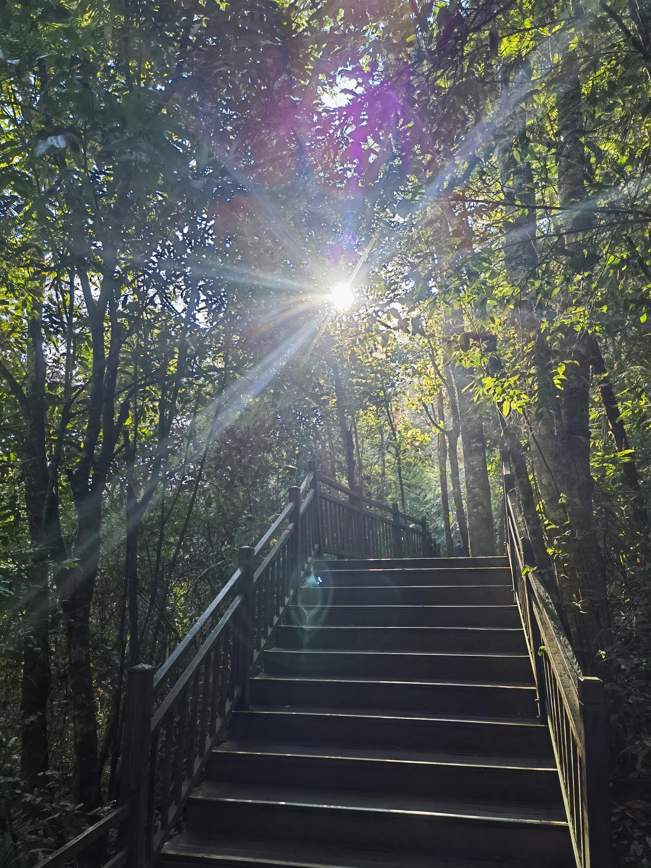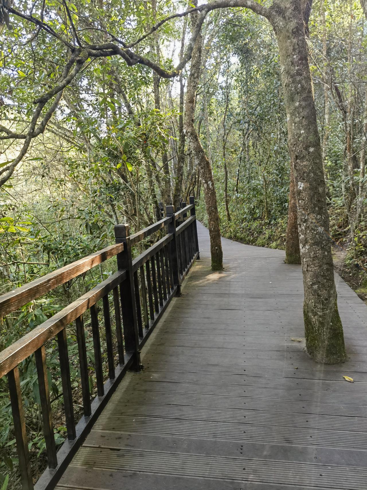 云南旅游系列篇(十三) 标题:普洱太阳河森林公园 普洱可不只是因茶叶而闻名,它还有一处美轮美奂的太阳河森林公园。 公园入口的小广场上有一棵树,树上栖息着好几对重情重义的白鹇鸟。它们爱意缱绻,当着游客的面长时间交颈接吻,深情动人。这一幕让游客们惊叹不已,自愧不如。 公园沿着山谷有一条长长的木栈道,顺着木栈道前行,沿途风光旖旎,绿树成荫。一路上能看到圈养的黑熊、犀牛、猴子、熊猫等动物。 漫步在这条长长的木栈道上,人们丝毫不觉疲惫,反而感到心旷神怡,畅快至极。 尤其是那些叫不出名字的植物和小花朵,随手一拍便是一幅如画的美景。