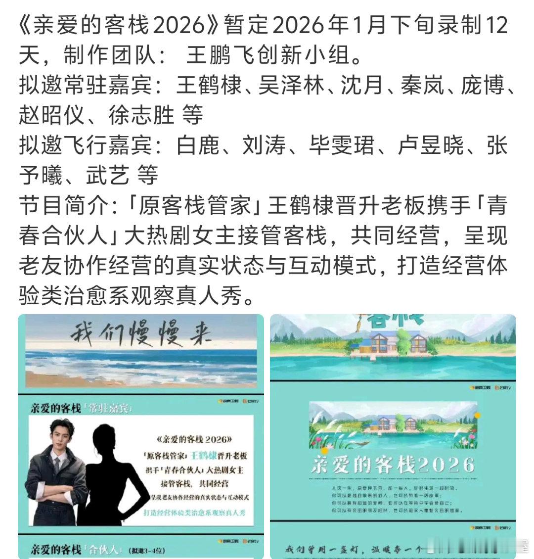 王鹤棣和沈月要合体录制《亲爱的客栈2026》了吗?怪不得最近这么多合体热搜亲爱