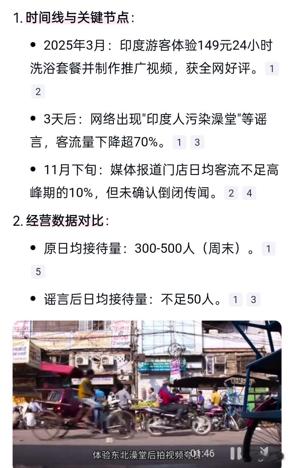 亏惨了,东北澡堂子接待印度游客后差点倒闭,濒临破产! 时间线捋一捋: 2025年3月份,一群印度游客突然涌进东北澡堂子,据说是体验149元24小时洗浴吃喝套餐,他们同时制作推广视频,获全网好评。全球网友纷纷夸赞,世界上最具有体验感的东北澡堂子,引的一大批印度人进澡堂体验洗浴! 事情转折了,据说3天后,全网网络出现"印度人污染澡堂"的言论。然后客流量疯狂下降,老板心都碎了。 然后直到现在,据说门店日均客流不足高峰期的10%,据说老板偷偷在家哭了好久! 不知老板现在后悔没有,他的发心是好的!