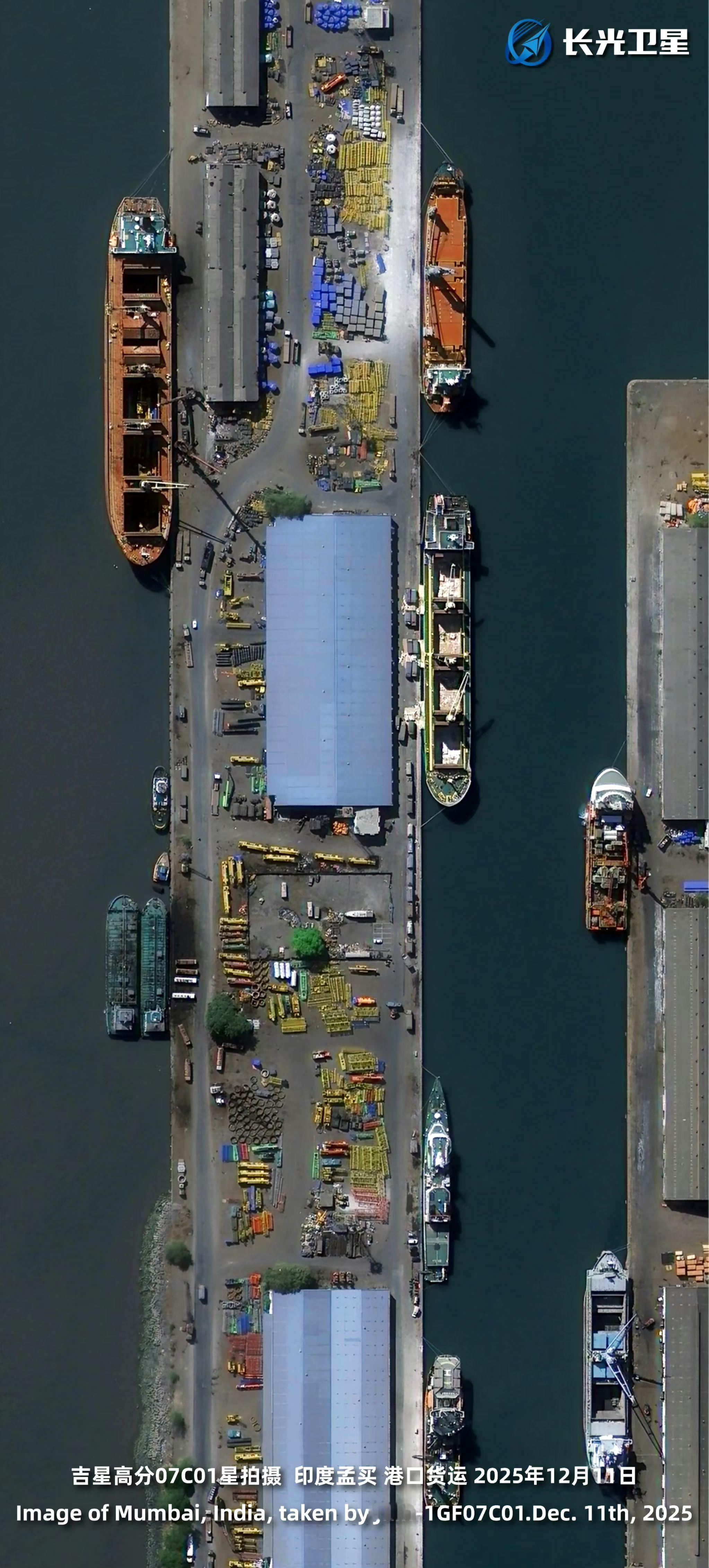 吉林一号高分07C01拍摄的印度孟买港口和CBD区域高清影像