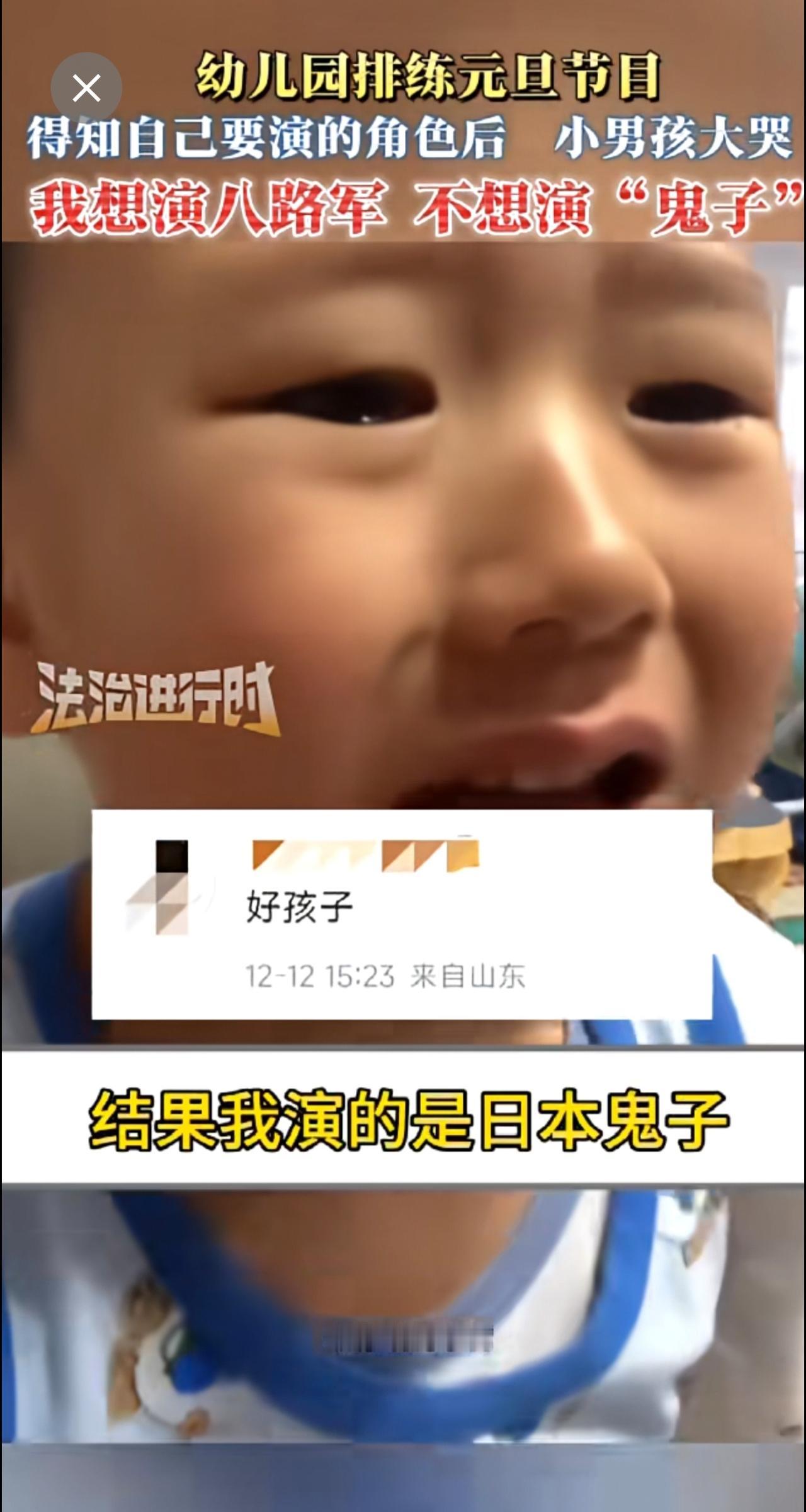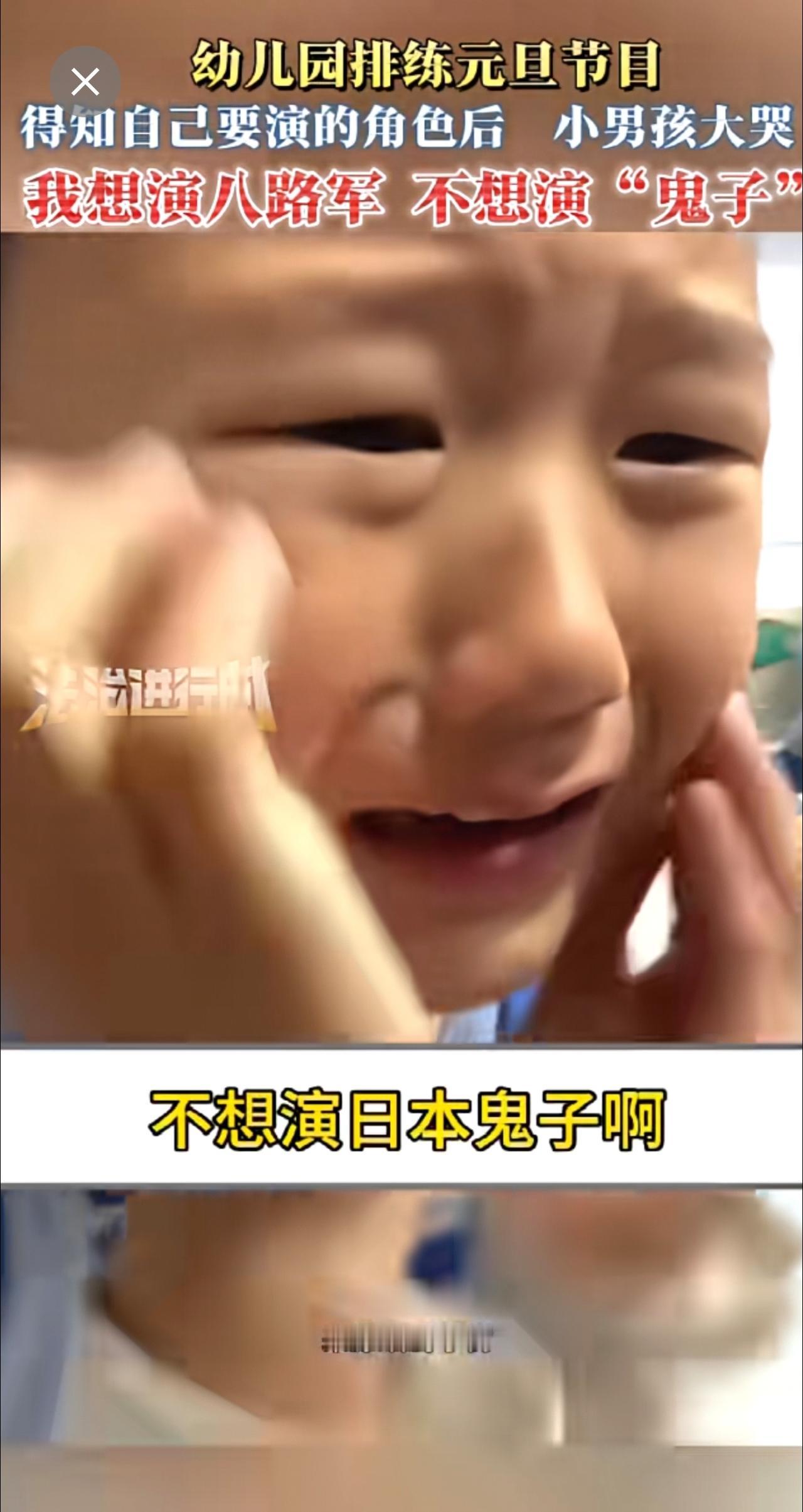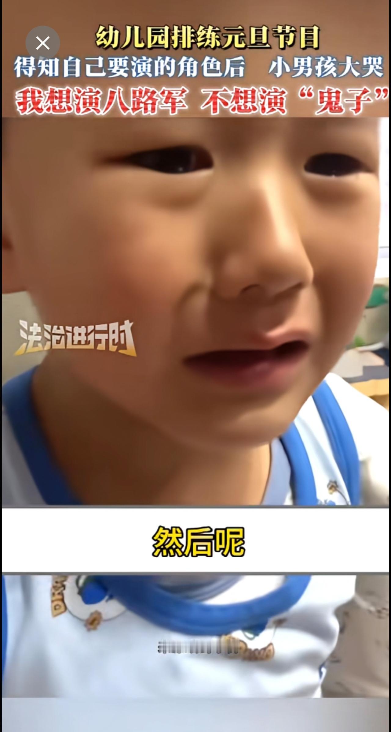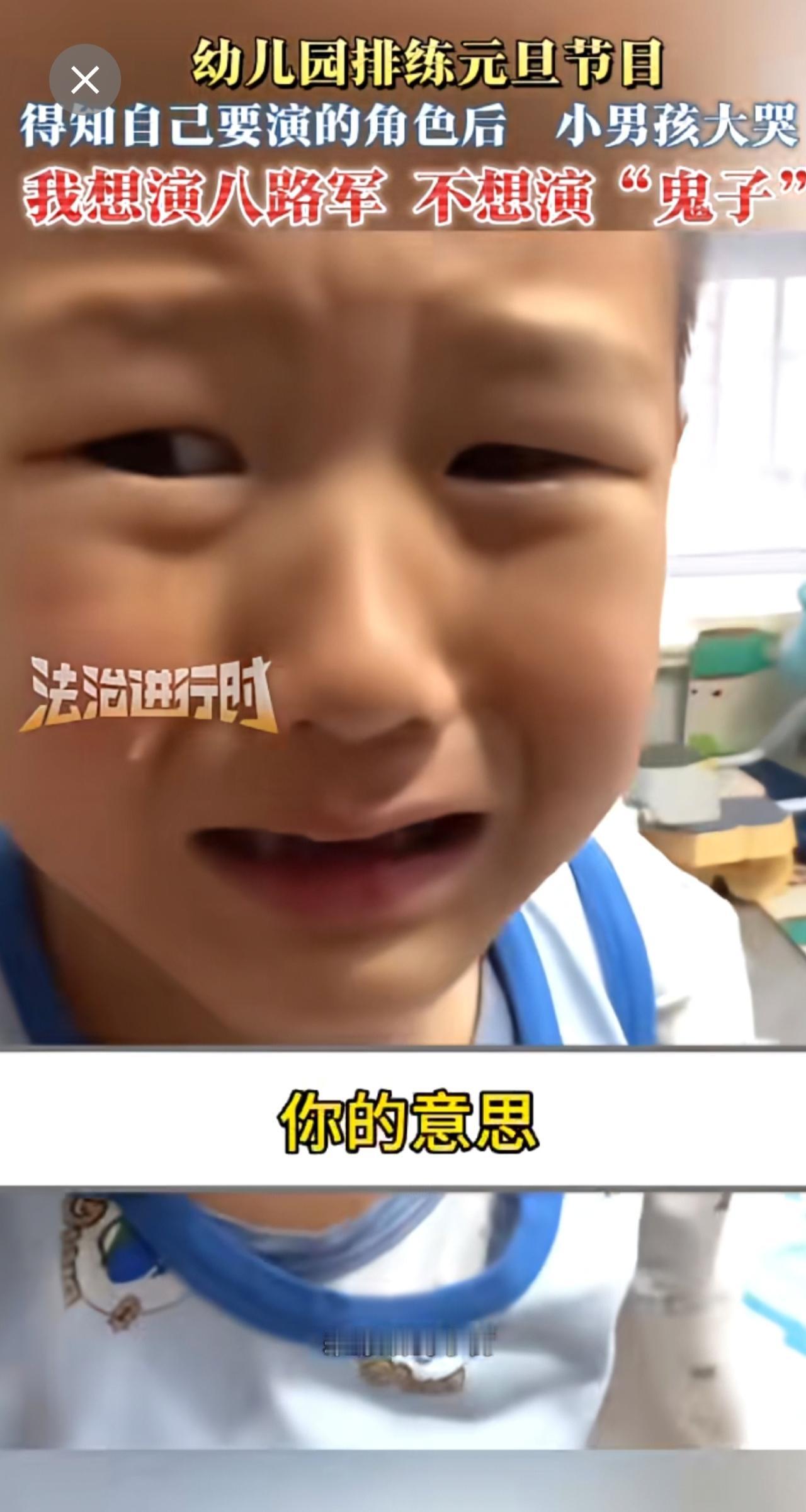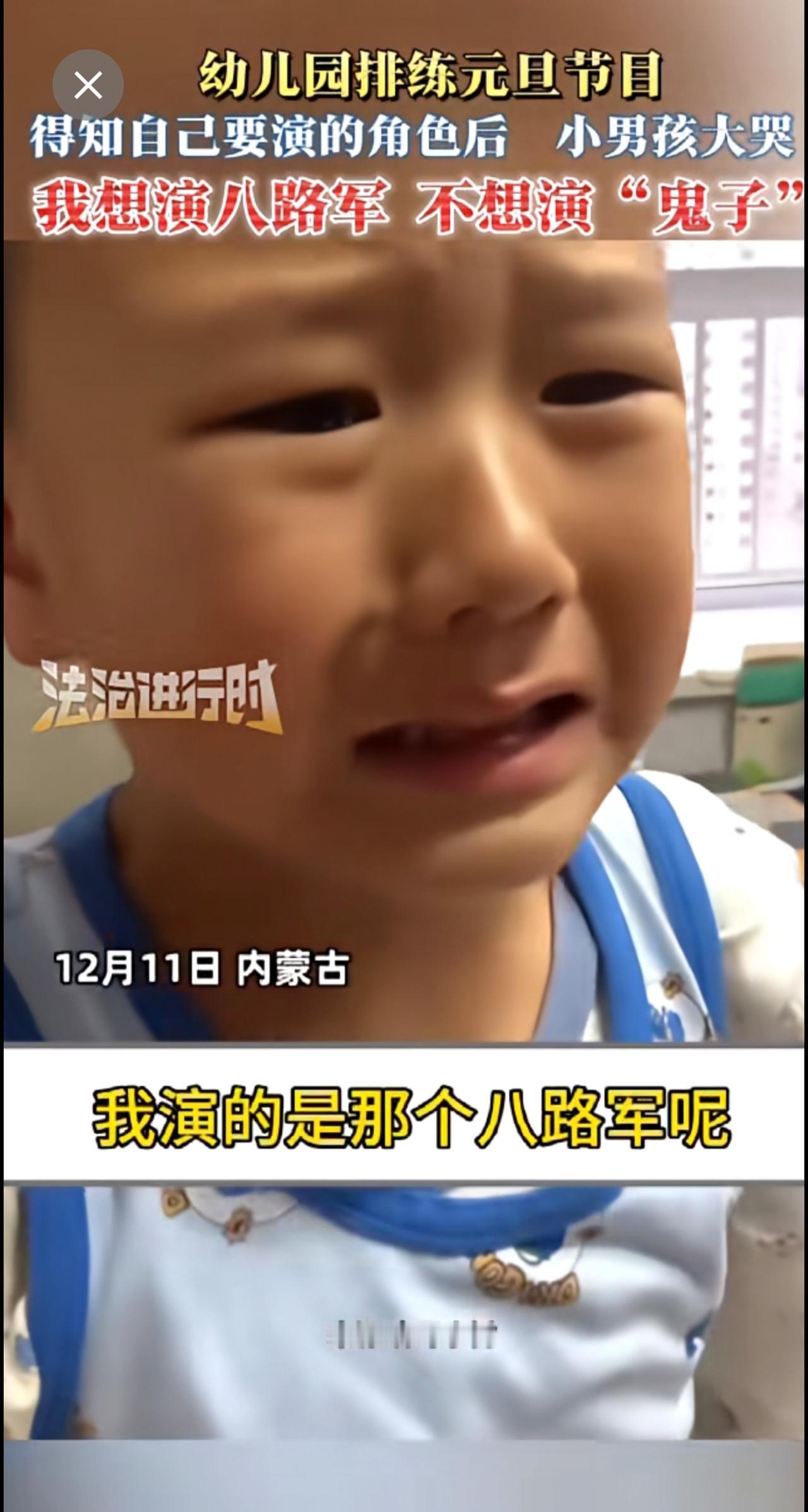 幼儿园排练元旦节目 得知自己要演的角色后 小男孩大哭 我想演八路军 不想演“鬼子”(编辑:刘洋)