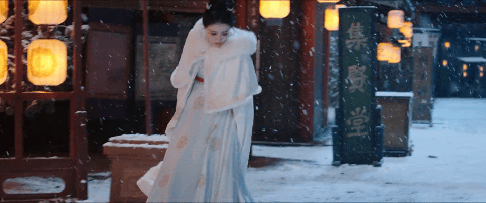 朕的玉娆果真是国色 徐璐白衣造型在雪地中显得如雪般纯洁