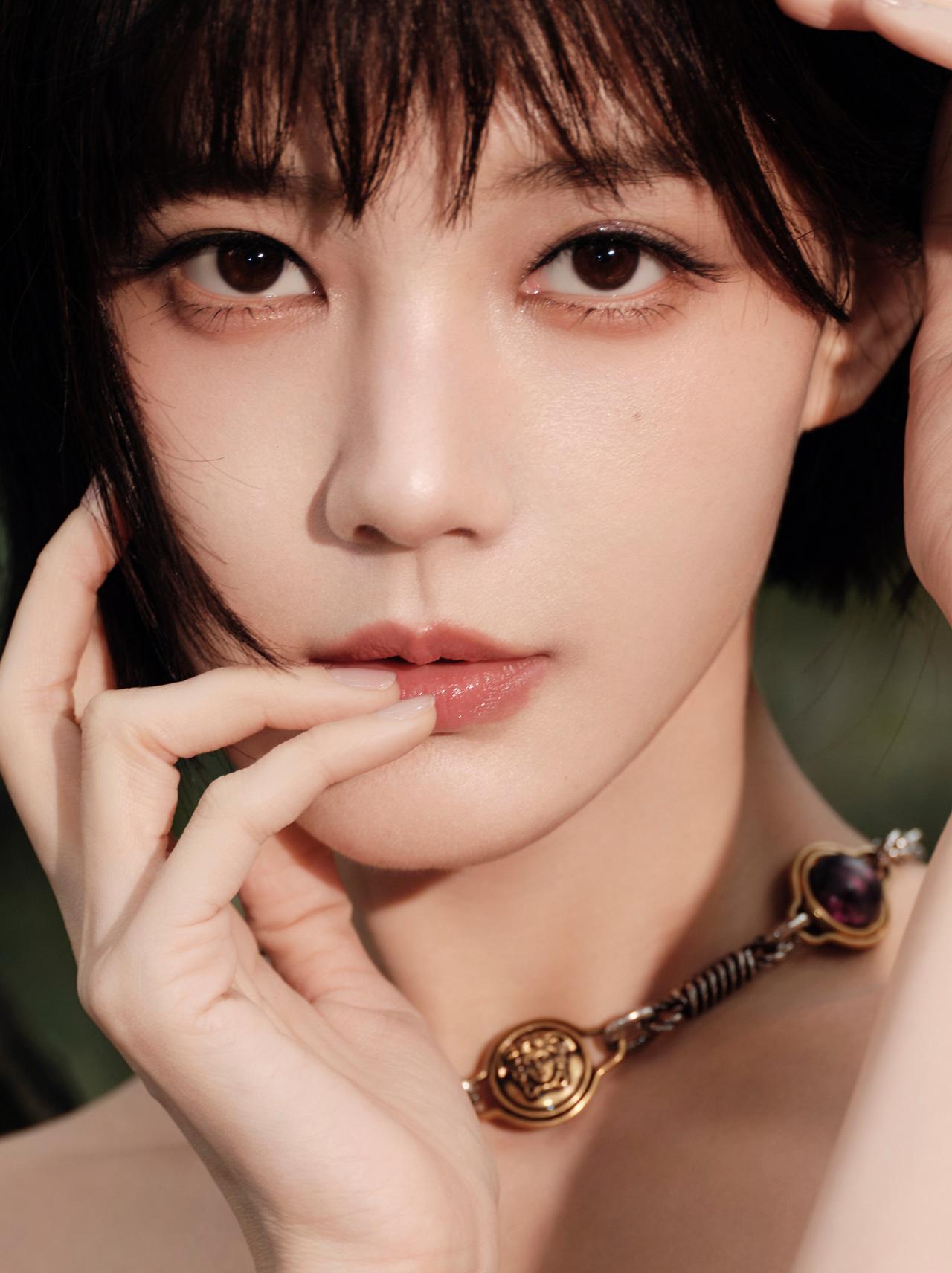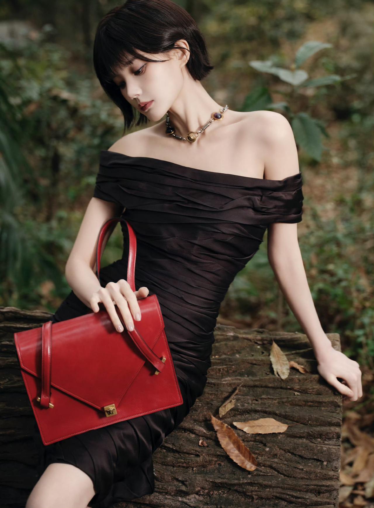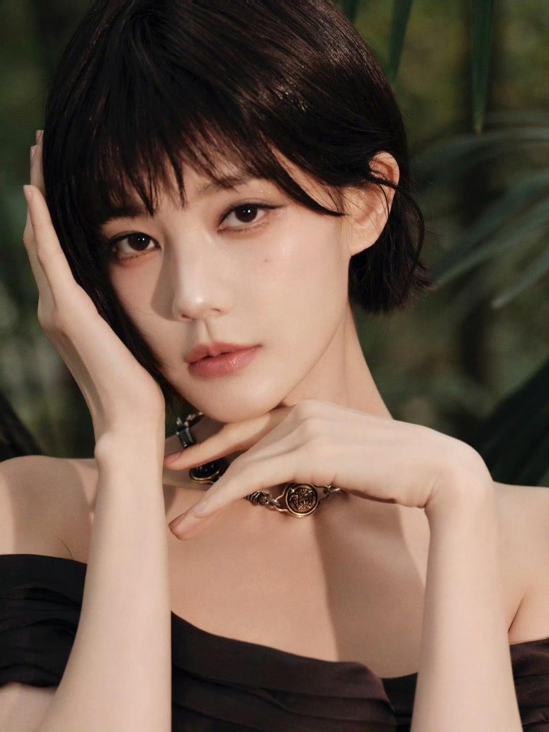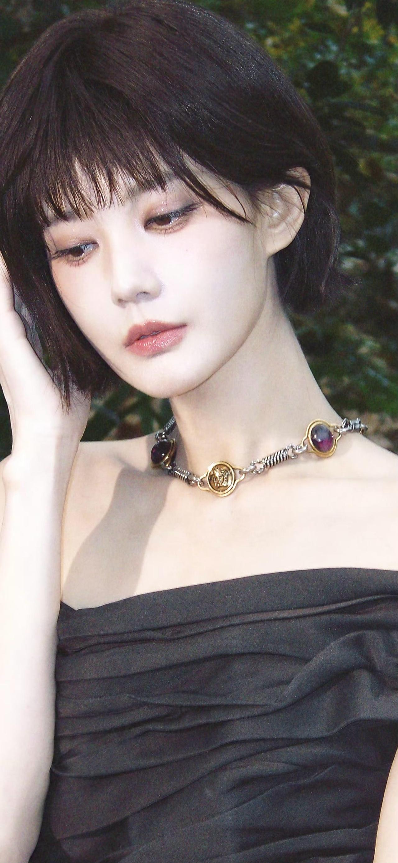 黑裙黑发,优雅坐于林间,静谧如画。李一桐!!!
