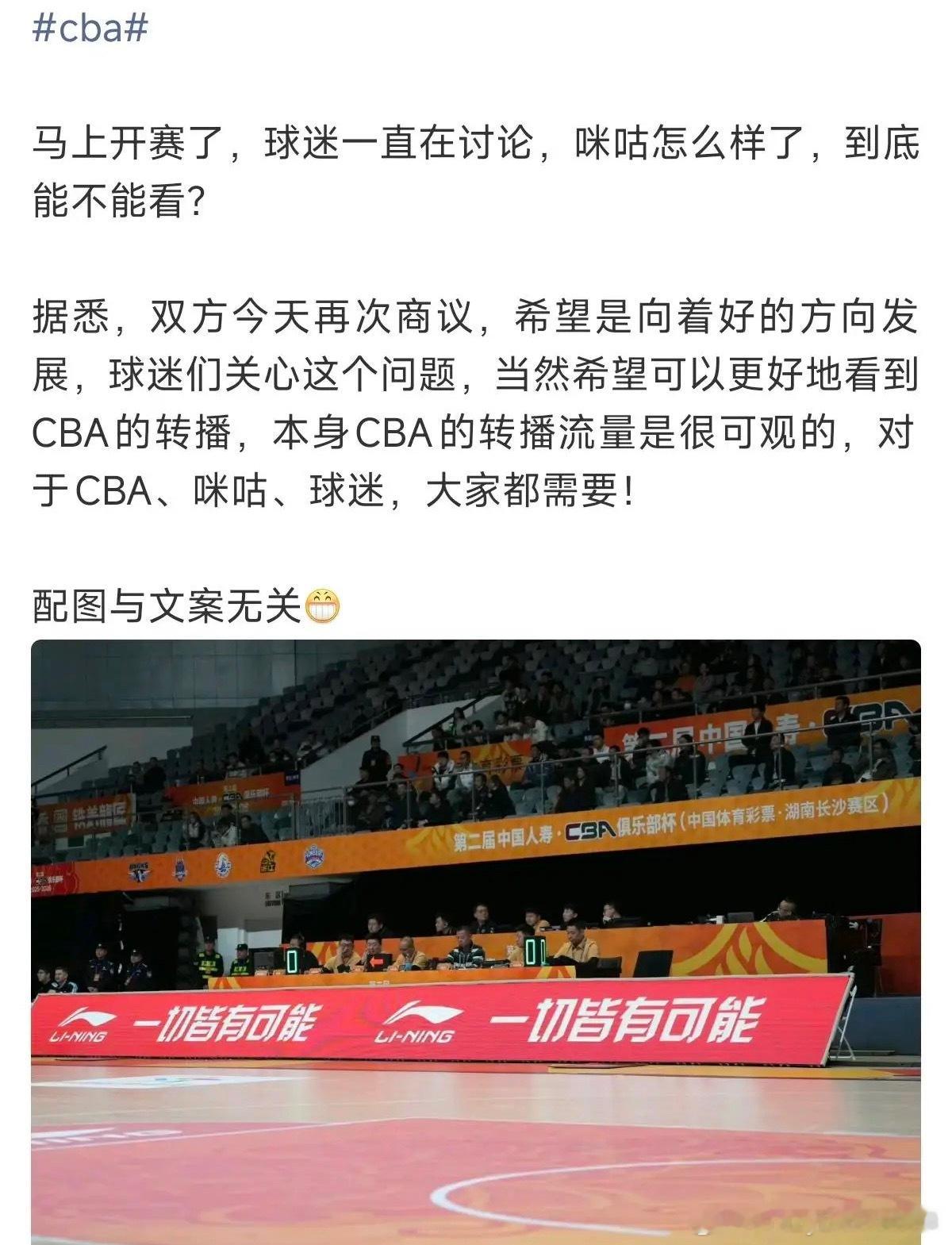 杨毅老师回复:CBA公司和咪咕谈到快完蛋的进度了