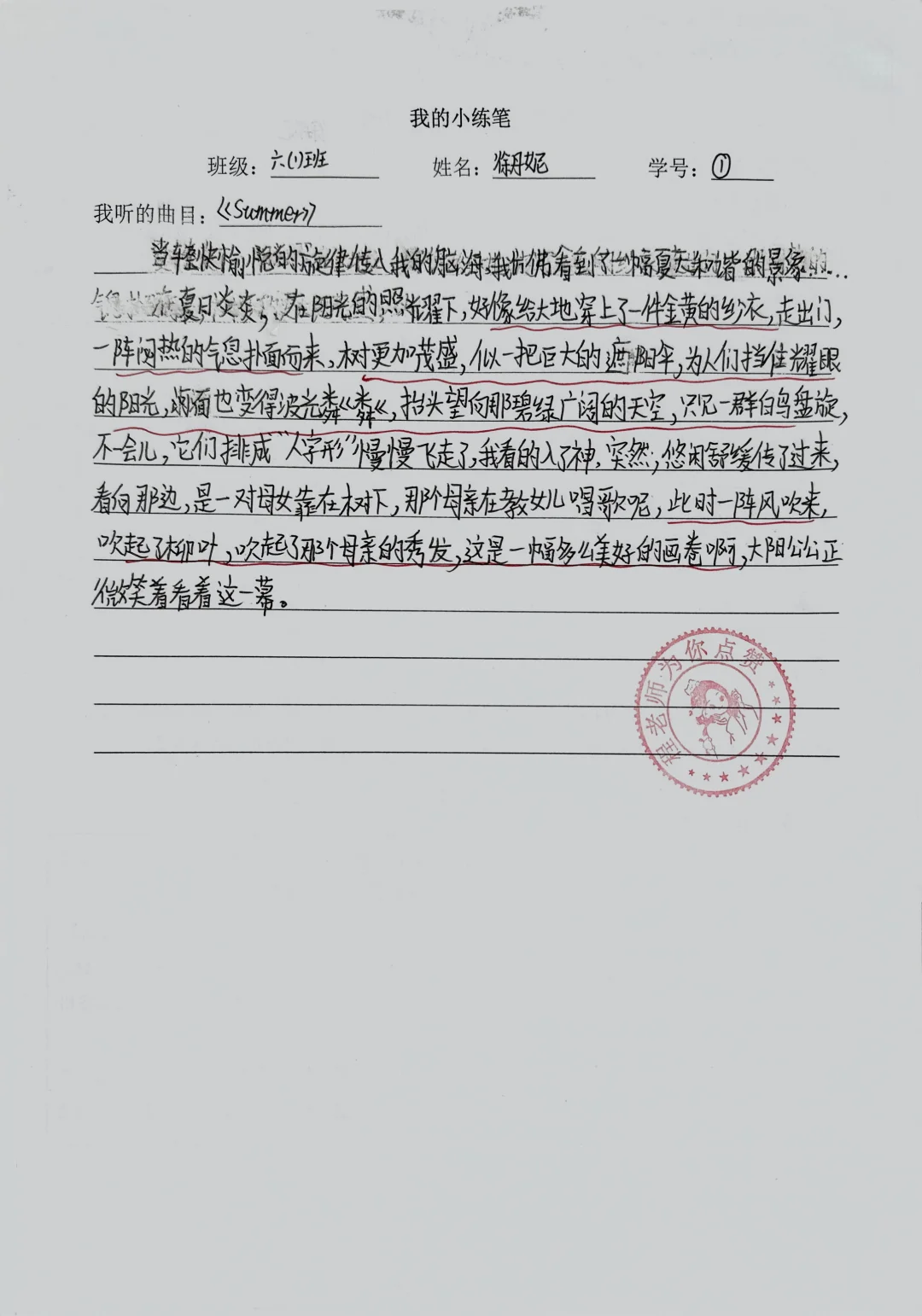 孩子们展开联想的《月光曲》小练笔