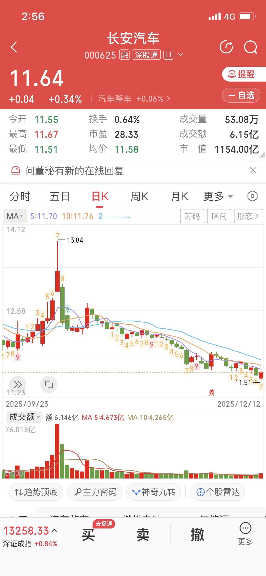 12月13日长安汽车股价有点意思。当天它收盘价18.89元,下跌0.26%。不过在深股通连续3日净卖出的情况下,股价还累计涨了3.00%,这期间上证指数跌0.03%,汽车行业涨1.23%。深股通12月13日净卖出4.16亿元,3天合计净卖出10.21亿元。 资金流向方面,当日主力资金净流入167.36万元,3天累计净流入2.09亿元。12月12日两融余额61.47亿元,近10日融资余额增11.42亿元,增幅24.02%。近一个月18家机构评级买入,国泰君安目标价25.22元。而且长安汽车控股子公司深蓝汽车拟募资61.22亿,这对未来业绩增长是有想象空间的。