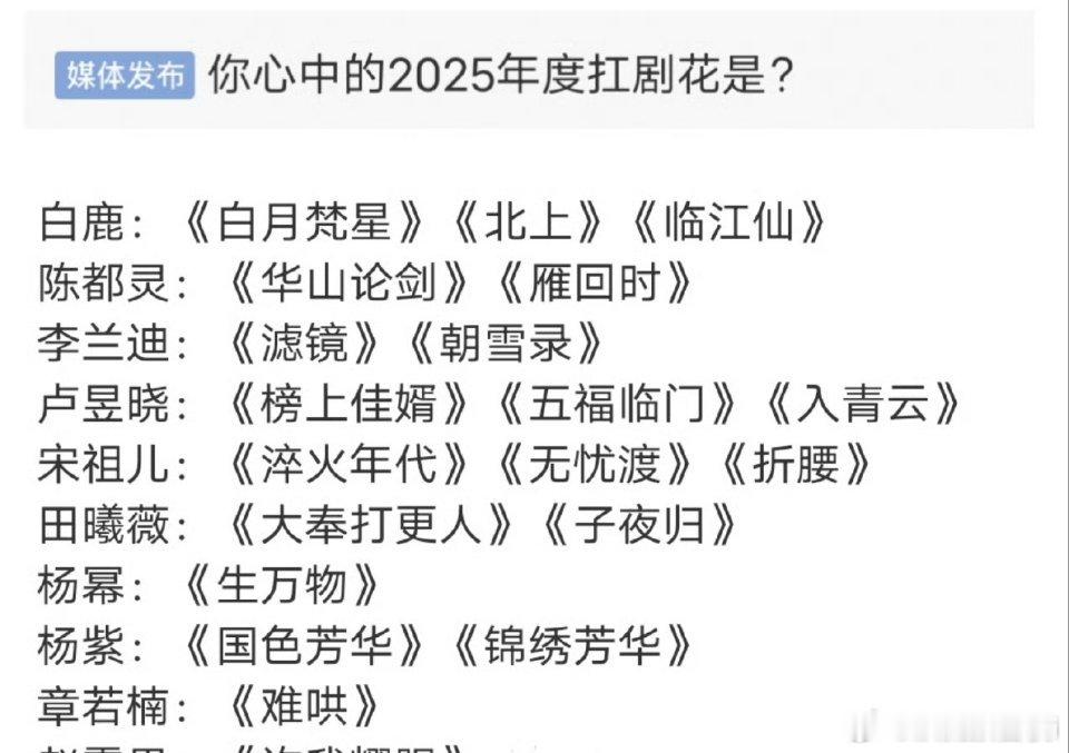 新浪电视剧认证的2025三大扛剧花:白鹿、杨紫、田曦薇 都认可