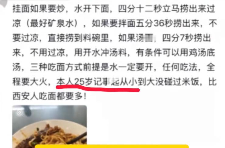 这是什么新兴的互联网起号方式 即蛋神之后 现在又出现了一位挂面之神 即蛋神发出视频告诉大家怎么做鸡蛋才好吃后,挂面之神也开始发力。 他告诉大家,挂面下水后,4分12秒过凉水最好吃,如果要拌菜或者拌料,那就要等到5分36秒捞出。 这种精确到秒的煮面方法,确实让人惊叹不已,看来这就是下一个美食博主的风口了,我相信很快还会出现什么,馒头之神,盖浇饭之神,蛋炒饭之神。 怪不得说三百六十行,行行出状元,原来做一样东西精通了是真的能赚钱啊,只恨自己是个善变的人,吃一样东西不到一星期就腻了,看来这么多年的饭是白吃了。