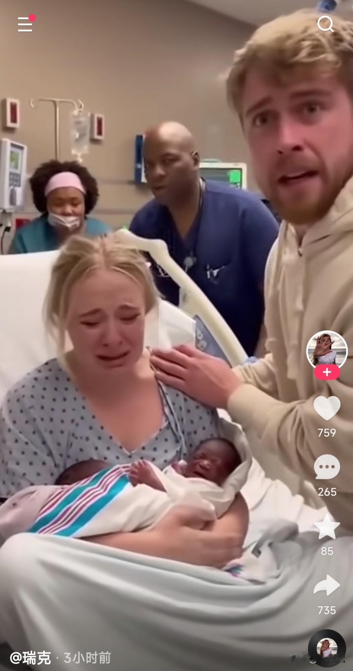 我的乖乖真是笑死人了,我以为只有黄种人才会生出黑人孩子来,原来这白种人也会生出黑人孩子来,这到底是白人女子把老公给绿了还是基因突然变异了? 当刷到这个视频的时候差点把我笑死,两口子都是白种人咋会生出两个黑人孩子呢?视频中只见这白人男子大声的吼叫着,这抱孩子的女人也是一把鼻涕一把泪的,有网友说这男的质问女子为什么生出来的孩子皮肤是黑的,两口子都是白种人咋会生出黑皮肤的孩子来?这是老婆给自己戴绿帽子了吗?也有网友说这男子在说这两个孩子是连在一起的,到底为什么会这样? 看到这条视频我也一脸懵逼,到底是基因突然变异了?还是这女子给老公戴绿帽子了?两个孩子为什么都是黑皮肤?