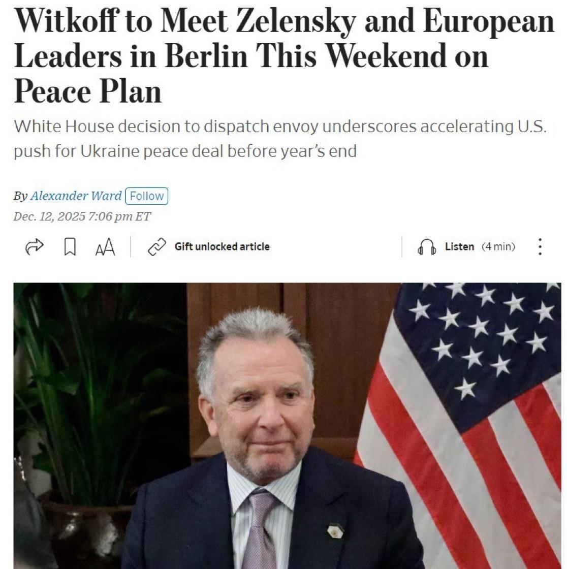 维特科夫前往柏林——战争能在年底前结束吗? 据《华尔街日报》报道,至少这是白宫的雄心壮志。 据该报报道,特朗普的特使将于本周末抵达柏林,预计他将与泽连斯基、默茨、斯塔默和马克龙会面。 特朗普前一天告诉记者,乌克兰和平进程取得了重大进展。然而,多家媒体援引消息人士的话称,和平计划中仍存在重大分歧——而这一切最终仍归结于领土问题