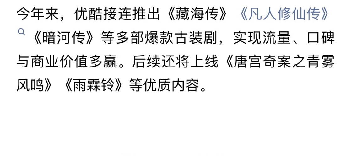 《藏海传》《凡人修仙传》《暗河传》获优酷爆款古装认证,剧集在故事架构与角色塑造上用心,收获观众认可。优酷认证爆款古装藏海传凡人修仙传暗河传爆款古装