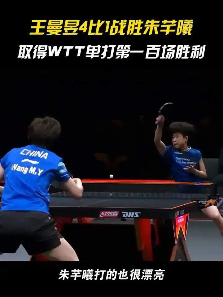 王曼昱4比1赢了朱芊曦。 这是她WTT单打第一百场胜利。 中间8平那球打得真聪明。 相持里调动朱芊曦的线路,反手远台反拉完马上正手补一刀。 反手实力厚得没话说,占了主动就能打穿对手。 朱芊曦速度快也没用,曼昱防守密不透风。 一百胜来得实至名归,这实力摆这儿呢。