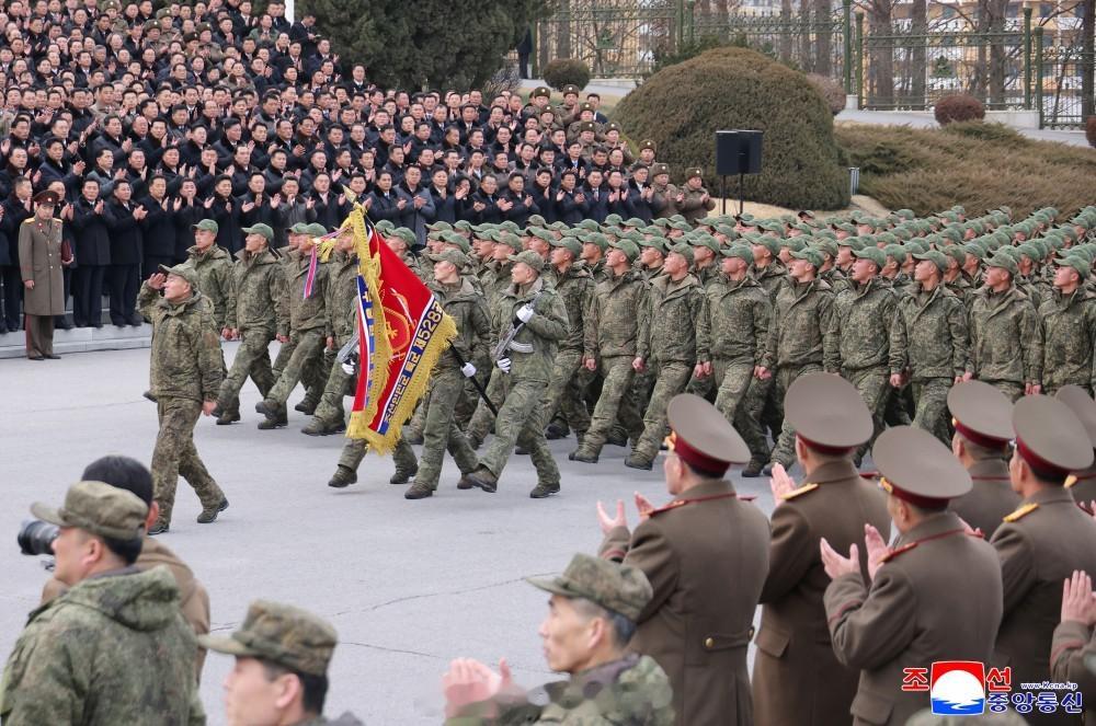 【欢迎赴海外作战区执行党的战斗命令归国的朝鲜人民军工兵部队仪式隆重举行】朝中社平壤12月13日电 朝鲜人民军把绝对忠于党和革命当做神圣使命和本分,以大无畏的战斗精神和集体英雄主义不断荣立赫赫战功,弘扬我们国家的权威与名誉。遵照朝鲜劳动党中央军事委员会命令出兵海外作战区的朝鲜人民军工兵部队指战员完成军事任务后,高奏胜利凯歌荣归祖国。欢迎赴海外作战区执行党的战斗命令归国的第528工兵团仪式12月12日在首都平壤的四·二五文化会馆广场隆重举行。朝鲜人民军特种作战军官兵建立永载主体建军史册的传奇式海外作战殊勋之后,工兵部队全体指战员再次彰显了我军不可抗拒之威力。广场沉浸在热烈的欢迎气氛之中。朝鲜人民军官兵和首都市民热烈祝贺满怀捍卫我国绝对尊严的无比自豪走进广场的人民的好儿子们。朝鲜劳动党总书纪、朝鲜民主主义人民共和国国务委员长金正恩同志出席了欢迎仪式。朝鲜劳动党第八届中央委员会第十三次全会参加者、朝鲜民主主义人民共和国国防省和朝鲜人民军大联合部队指挥员、工兵团战斗员家属、人民军官兵和首都市民以及青年学生参加了欢迎仪式。金正恩同志抵达时,全体军民高呼“万岁”,感谢百战百胜的钢铁统帅以卓越的军事战略思想、非凡的领军艺术、大海般的信任和关爱,把我军武装力量壮大成为依靠思想精神和战略战术的绝对优势从胜利走向胜利的无敌强军。喊声响彻12月的天空。金正恩同志向捍卫朝鲜人民军的不朽名誉和尊严而荣归祖国的工兵部队全体官兵表示战斗敬礼。海外工兵战斗部队指挥员向共和国武装力量最高司令官郑重报告:完成了党的战斗命令。金正恩同志热烈祝贺工兵团的辉煌战果。金正恩同志为祝贺工兵部队归国,发表了讲话。金正恩同志热情地勉励大显无比的英雄精神和专业素质,出色完成党的战斗命令,回到母亲祖国的工兵团全体指战员,并谈及在120多天的每时每刻怀念心爱的儿子们的苦苦等待之滋味和将永载我军海外军事作战史的工兵团的战斗功勋。金正恩同志表示,我国军人们在海外作战区流下的高贵血汗、付出的宝贵牺牲,将永垂不朽;第528工兵团指战员所建树的丰功伟绩将与强大的我国军队的名声一道,永放光芒。金正恩同志说,向官兵们始终忠于祖国的忘我服务精神表示感谢和崇高敬意,并结束了讲话。金正恩同志结束讲话时,全体参加者仰望着金正恩同志再次爆发出“万岁”欢呼声,场内洋溢着他们回到了梦寐想念的慈父怀抱的无限感激与幸福、受到伟大统帅祝福的无上光荣与喜悦。金正恩同志宣布,母亲祖国为高度评价并永远弘扬你们部队所发挥的勇敢精神与赫赫战功,决定向工兵团授予一级自由独立勋章;向战斗命令执行过程中牺牲的9名战斗员分别追授共和国英雄称号、一级国旗勋章和一级战士荣誉勋章。金正恩同志受党和共和国政府委托,亲自给凝聚不朽功勋的团旗佩戴了母亲祖国授予的勋章。仪式场所洋溢着工兵团全体官兵的莫大激情和欢喜。金正恩同志向赢得党、祖国和人民的感谢与高贵荣誉的工兵团全体军人表示亲切祝贺。朝鲜人民军海外工兵部队方队高擎光荣军旗进行了阅兵行进。全体参加者热烈鼓掌,向带着胜战报告接受最高司令官检阅,得到无上殊荣的工兵军人们表示祝贺。金正恩同志会见工兵团模范指战员,褒扬并热情勉励他们绝对忠于党的命令、祖国的命令的透彻精神面貌和作战功勋。欢迎仪式场所展现出领袖与战士们以骨肉之情心心相印的动人情景,这是雄辩地证明我们祖国究竟靠什么伟大、我国军队靠什么强大的感人画幅。金正恩同志表示,全体工兵战斗员不是用口头,而是在决定生死的战场上用透彻的信念和意志、忘我牺牲的奋斗证明,忠于祖国和人民,对得起祖国和人民的好军人、好指挥员、好人是什么样的人。祖国和人民将永远记住他们的军功,我国军人在主持正义、维护尊严的圣战中所发扬的英勇精神永远是我们国家的第一自豪和骄傲。金正恩同志表示期待和相信,赴海外战场充分证明靠思想战无不胜、靠思想变得更强大的革命军队胜利与发展规律的英勇的战斗员们将继续建立代表我们这一代的宝贵军功,为朝鲜人民军的尊严和名誉增光添彩,并同他们合影留念。合影结束后,参战勇士们的热烈欢呼声震撼天地,反映了他们要为伟大的金正恩同志,为伟大的我们国家和人民的永恒胜利更加英勇奋战的坚定信念和意志。金正恩同志前往四·二五文化会馆中央大厅瞻仰追悼墙。金正恩同志虔敬地追思烈士们参加维护祖国名誉和尊严的圣战无私奉献独一无二的生命的高贵人生,在他们的肖像旁亲手佩戴朝鲜民主主义人民共和国英雄奖章、国旗勋章、战士荣誉勋章。金正恩同志向追悼墙敬献白花,默哀悼念烈士们,祈愿他们的高贵灵魂和精神在光荣之巅永垂不朽。朝鲜民主主义人民共和国国防省、朝鲜人民军大联合部队指挥员、工兵团指挥员和烈士家属向追悼墙敬献鲜花。金正恩同志接见并亲切安慰烈士家属,与他们分享丧失的痛苦。祝贺工兵团战斗员归国演出举行。金正恩同志和工兵团指挥员一起步入观众席。全体工兵团战斗员激情满怀,迸发出热烈欢呼声,表达他们回到梦寐想念、心驰神往的祖国的怀抱、伟大慈父的怀抱,获得人生最大光荣的幸福感。参战勇士们在远离