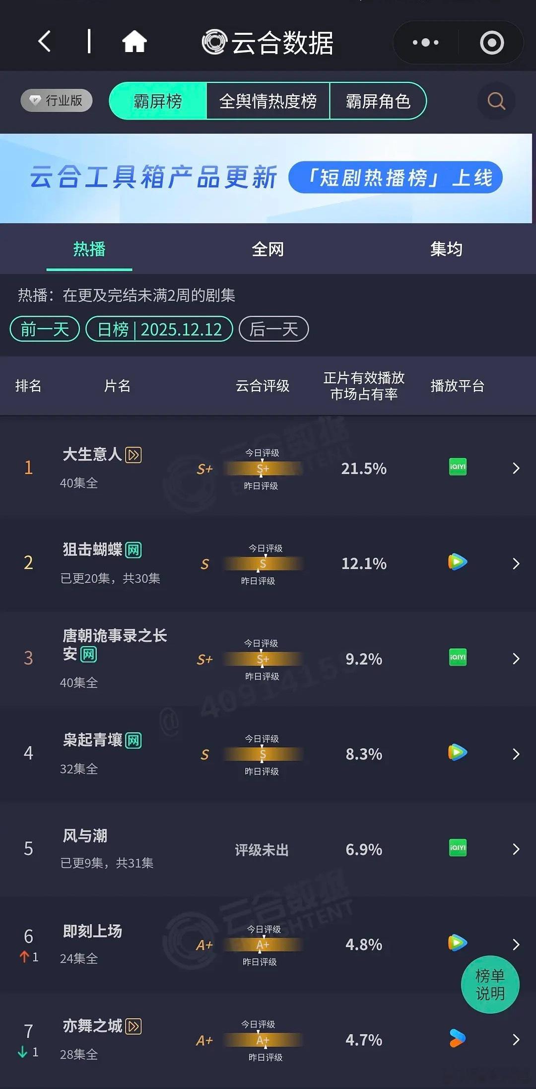 接大生意人的最高收视率然后就一路下滑……登顶只在借势的一瞬间长安二十四计全网收视