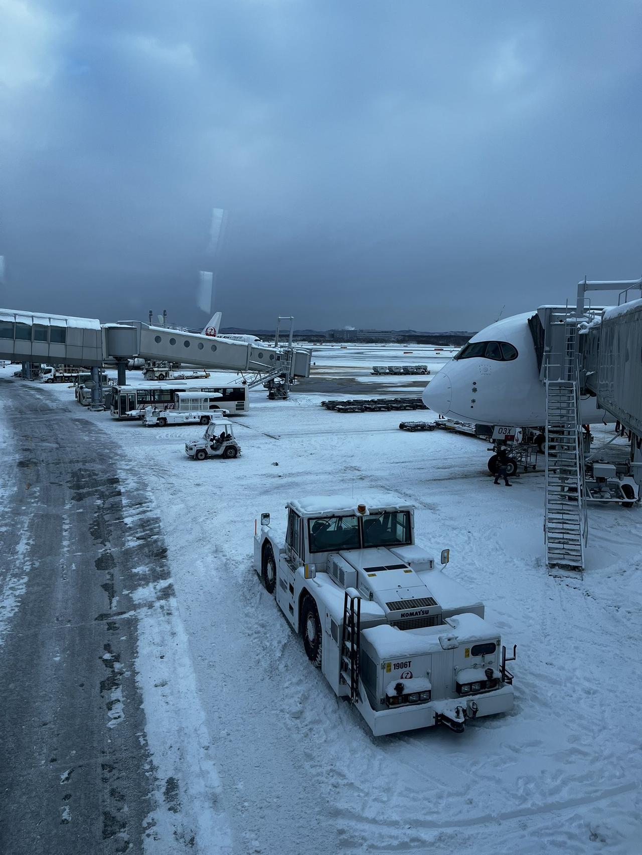 又是地震,又是暴雪...... 日本北海道新千岁机场12月12日受到大雪影响,导致上百航班取消,约750名旅客被迫在机场过夜。而在同日较早时则有一架飞机降落时冲出跑道,幸无人伤,但其中一条跑道需要暂时封闭。