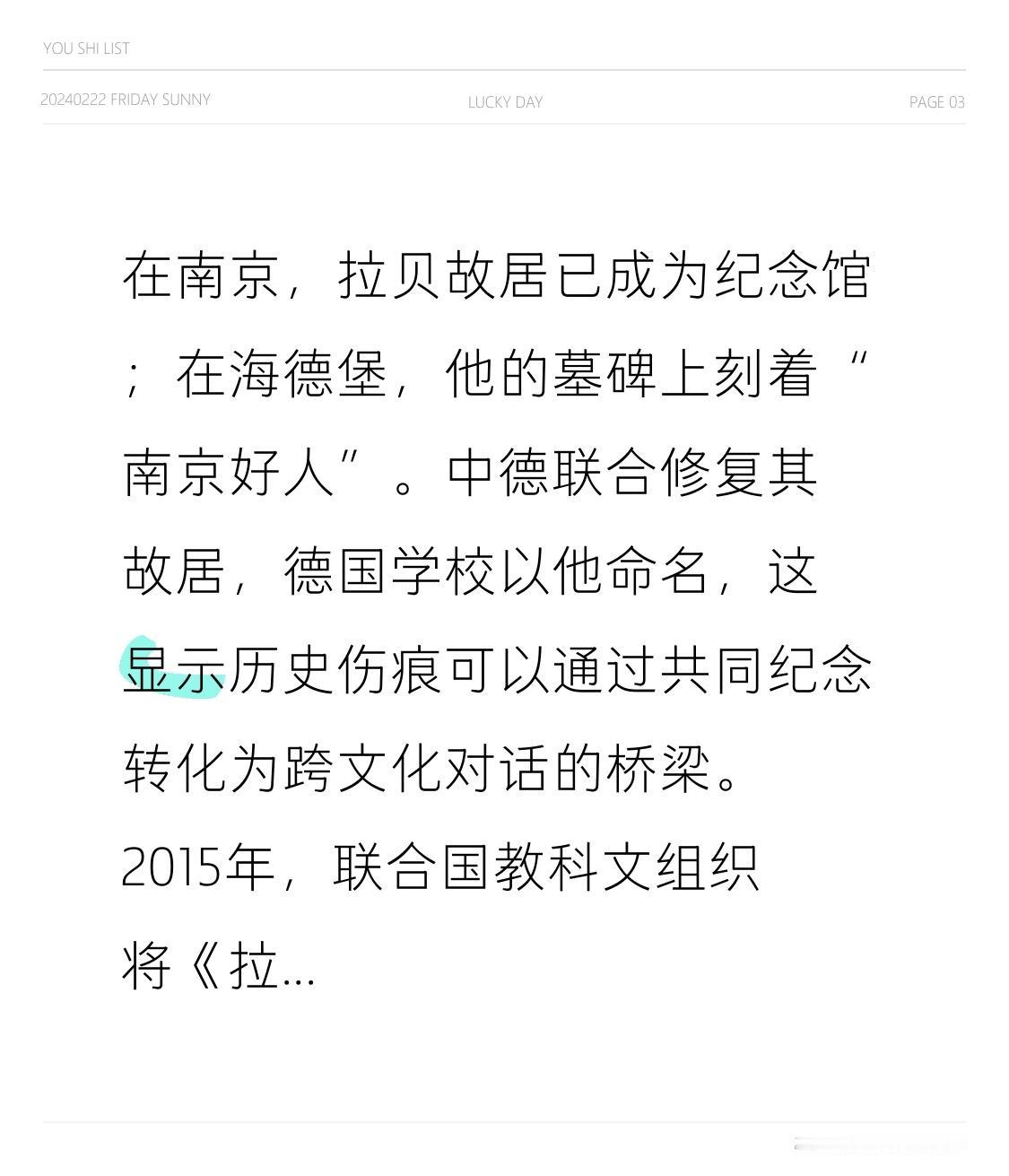 在南京,拉贝故居已成为纪念馆;在海德堡,他的墓碑上刻着“南京好人”。中德联合修复其故居,德国学校以他命名,这显示历史伤痕可以通过共同纪念转化为跨文化对话的桥梁。2015年,联合国教科文组织将《拉贝日记》列入《世界记忆名录》。