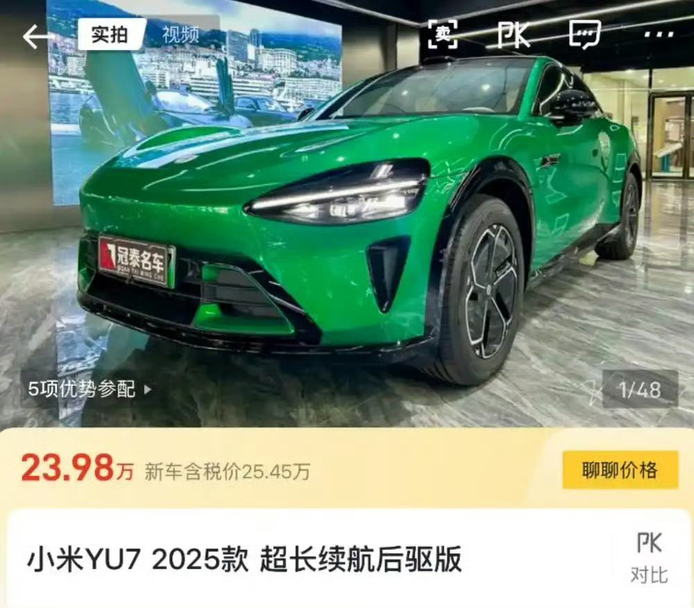小米YU7准新车便宜近1万元这不整挺好的,有优惠,还可以马上提车且享受完整质保。