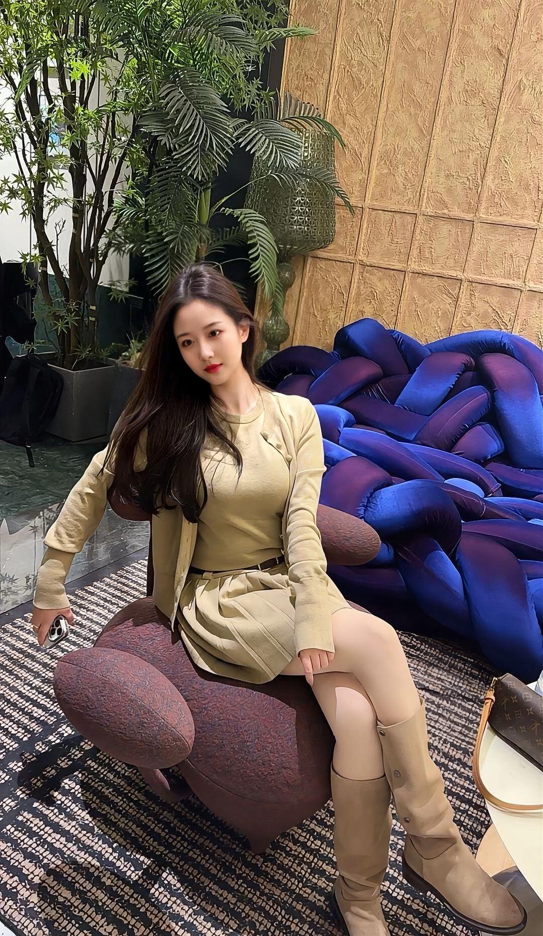优雅穿搭指南:米色套装+高筒靴,尽显都市时尚风范!👠👗💄