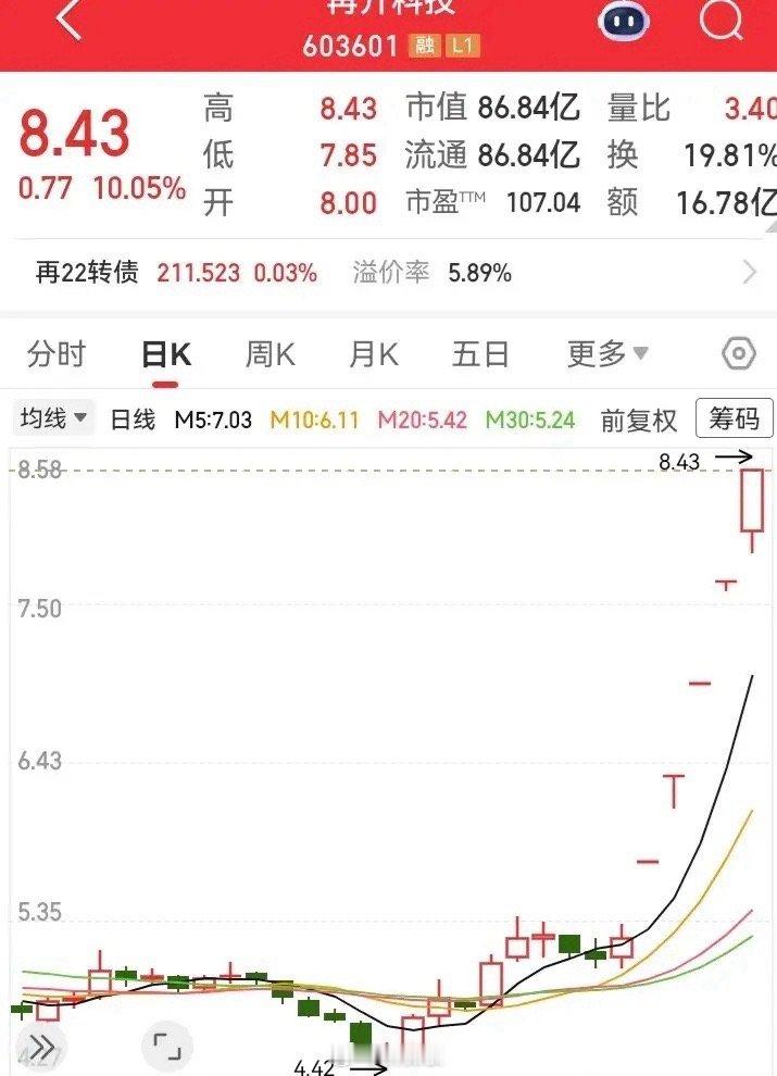 上个礼拜,涨得最迅猛的票!在突破上空压力位后,5天都走出了涨停板。从底部位置4块多算起,如今已经来到8块多的位置,基本上实现了高度上的翻倍。这种走势几乎是可遇不可求的。在低位磨盘了这么久的时间,突然就起飞了,根本不留时间去反应。从技术逻辑上来说,连续多个一字板的出现,即意味着走势被高度控盘,这是几乎是不给任何人进去的机会。这样就避免了在上升的过程中,低位进去的那部分又着急出来了,造成走势继续上行的困难。所以干脆在一开始就锁上门,不让那些不坚定的部分进来,这样能更好将走势拔高。所以,当走势首个一字板出现时,几乎没有人能够反应过来。当出现第二个涨停板的时候,已经是后知后觉了,再进去也来不及了。等到第三个和第四个涨停出现的时候,走势已然是达到很高的位置了。此处已经达到了不胜寒的高度了,所以大概率不会有再想进去的了。这就是这个走势形成的技术逻辑了。需要注意的是,不能去追这样的走势,否则很容易会成为一个大闸蟹。
