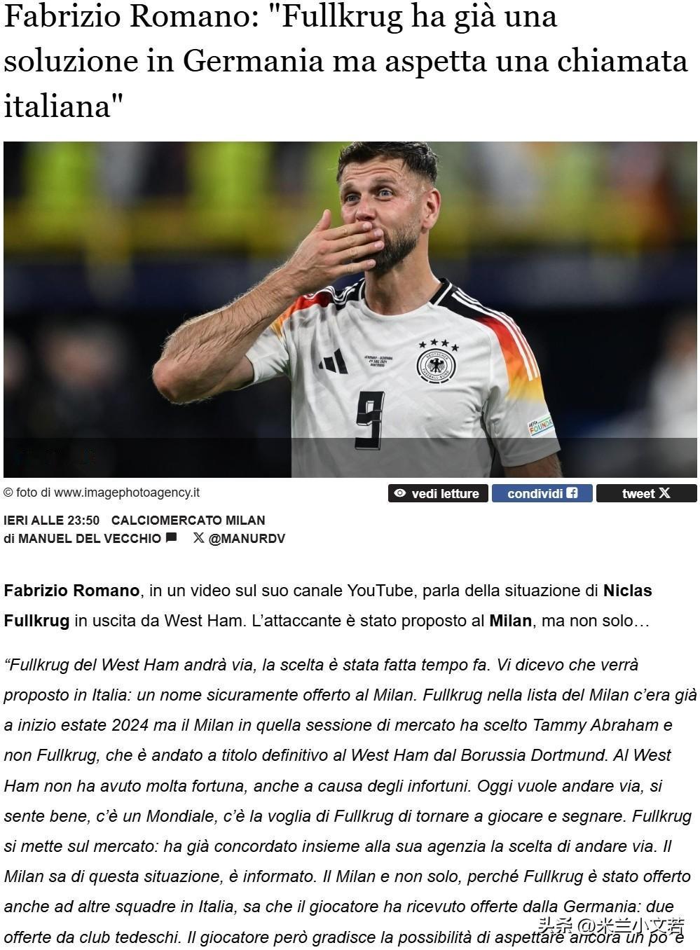 菲尔克鲁格!罗马诺消息称菲尔克鲁格冬季窗口肯定将离开西汉姆俱乐部,他的去处将是德甲与他们期望的意甲,现在菲尔克鲁格已经接到了来自德甲的邀请,但菲尔克鲁格并没有做出决定,他在等待意甲米兰俱乐部的最终决定。 菲尔克鲁格早在2024年转会窗初期就曾在米兰的名单上。但米兰当时选择了亚伯拉罕作为首要目标,没有推进菲尔克鲁格的转会。菲尔克鲁格在西汉姆联俱乐部的经历并不成功,伤病与战术适应成为了他在英超的阻碍,在世界杯年,菲尔克鲁格期待可以用最好的状态出现在世界杯赛场上,所以他会在冬季窗口选择一家新的俱乐部。 菲尔克鲁格收到了来自两家德国俱乐部的报价,但球员更想再等待一段时间,看看在意大利是否会有转机。菲尔克鲁格更期待可以加盟米兰。菲尔克鲁格在德甲时候支点作用是真好,但现在状态如何是未知数,好在西汉姆联愿意租借,租借这个事情对于弗拉尼而言就是最好的转会,所以这笔交易有可能实现,个人觉得菲尔克鲁格是这个冬季窗口最好的选择,当然会期待莱万多夫斯基,但莱万多夫斯基可能性太低了,还是菲尔克鲁格可能性最大。